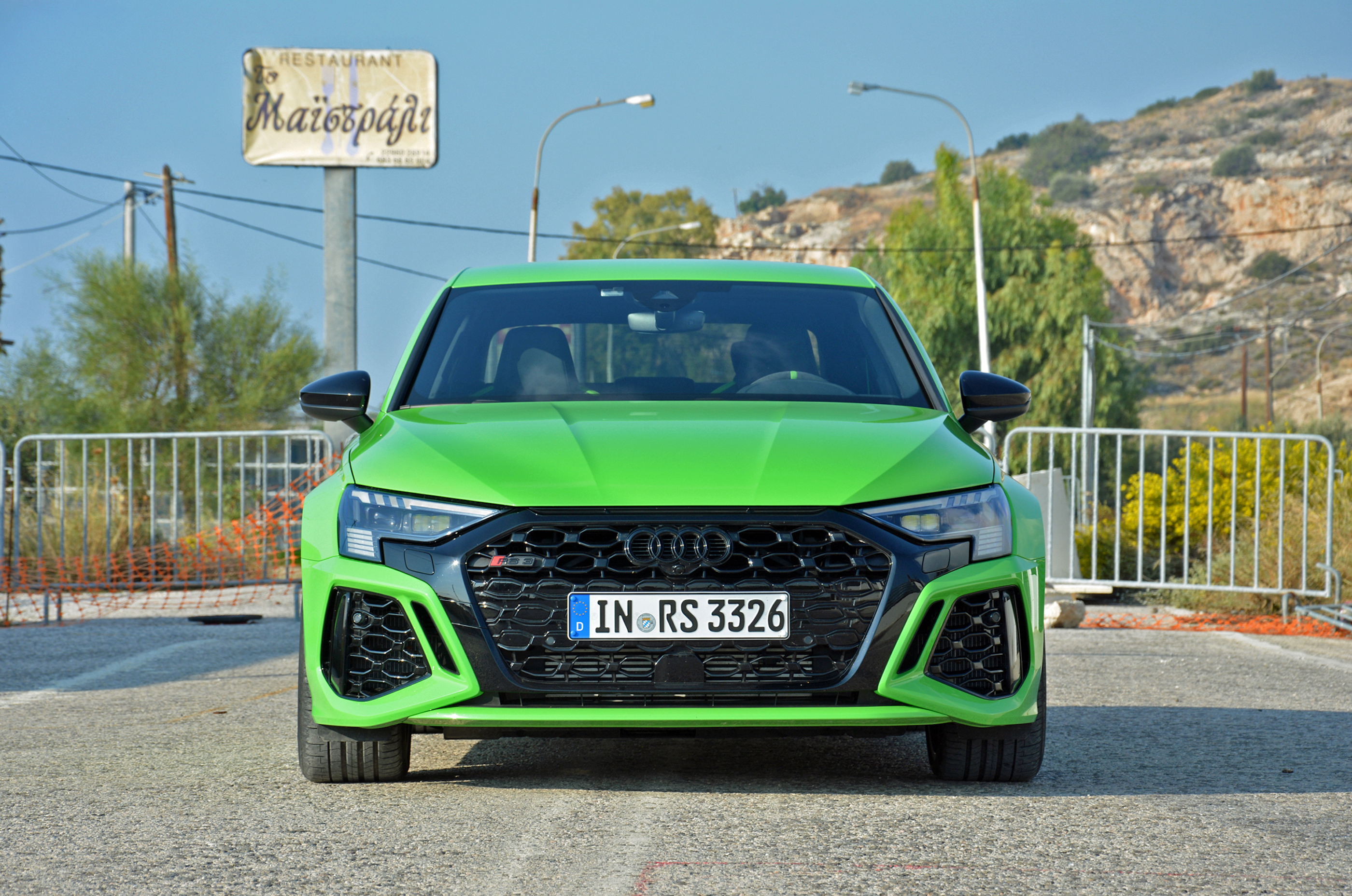 For all intents and purposes, the RS3 drives like a supercar that’s been miniaturized. Lapping the short, tight Megara track near Athens, Greece, in the RS3 Sportback—which will not be sold in the United States, even if you ask nicely or start an online petition—reveals the same attributes put on fast-forward. Here, without oncoming 125cc scooters to worry about, the effect that the torque splitter has on cornering is amplified and grip is phenomenal. There is a faint trace of turbo lag, but the engine easily overcomes it and pulls hard as the horsepower picks up where the torque leaves off.