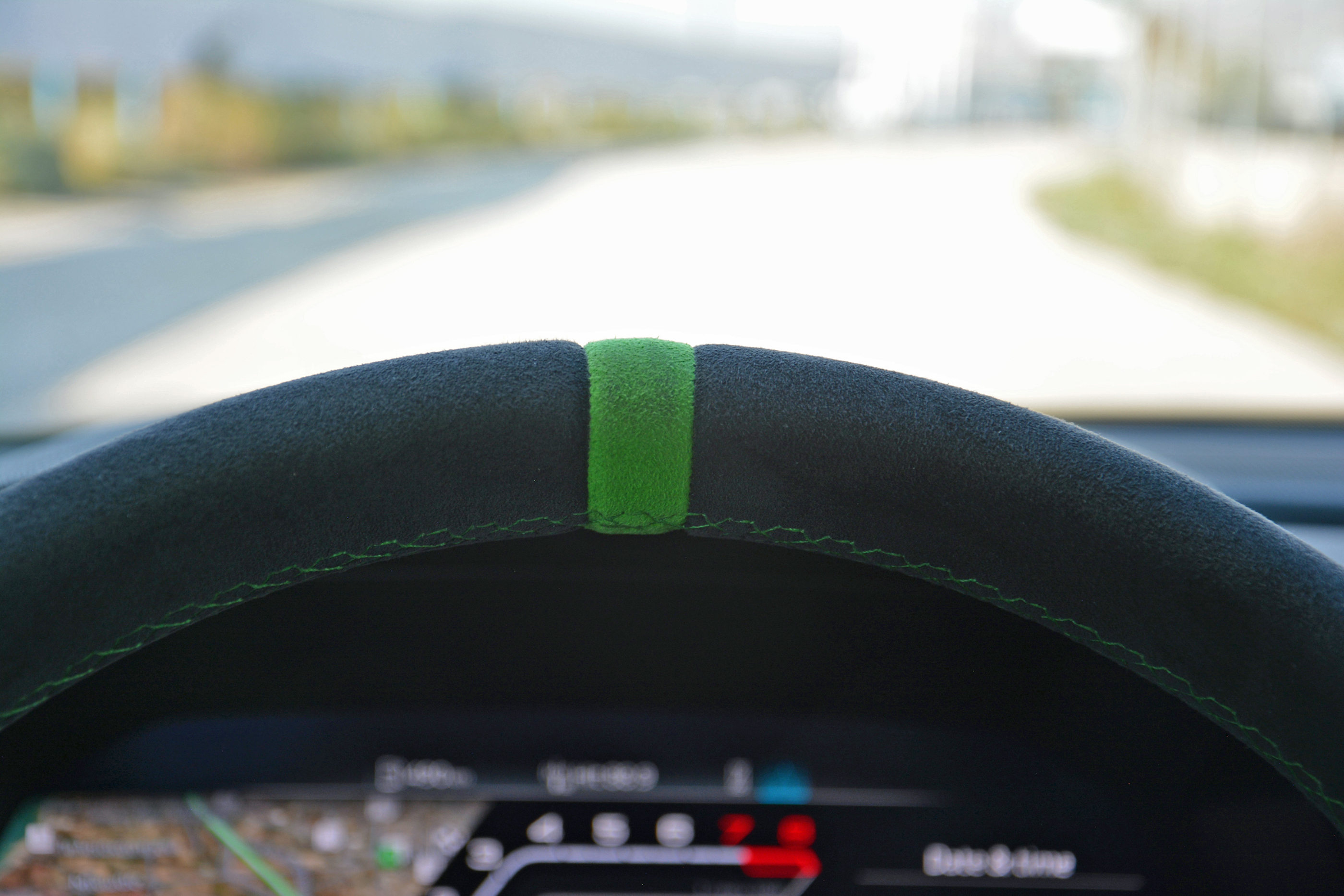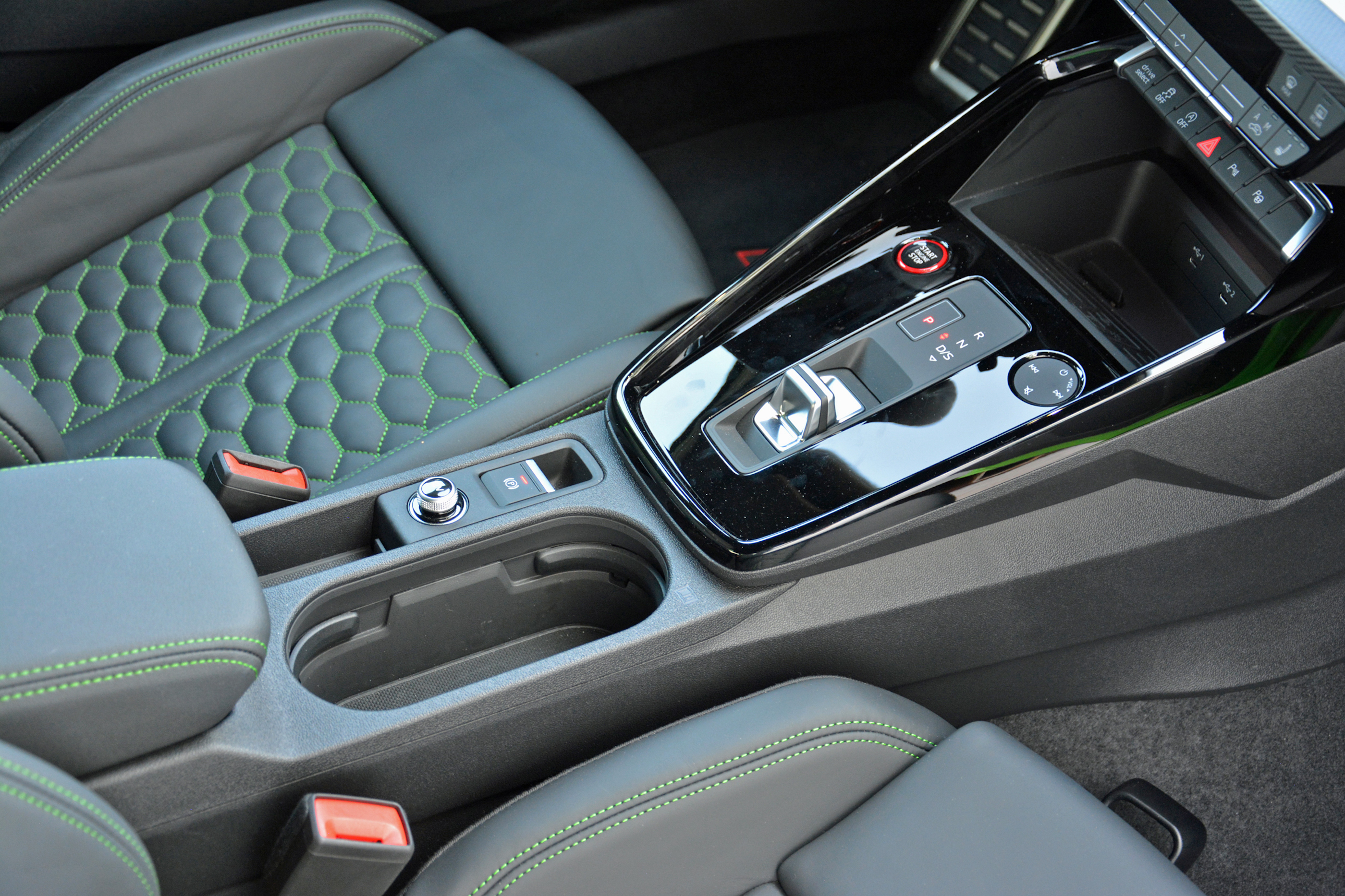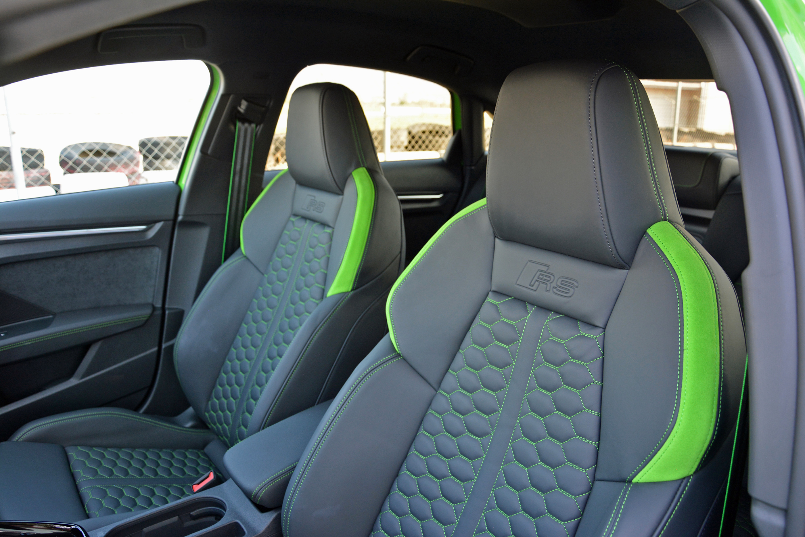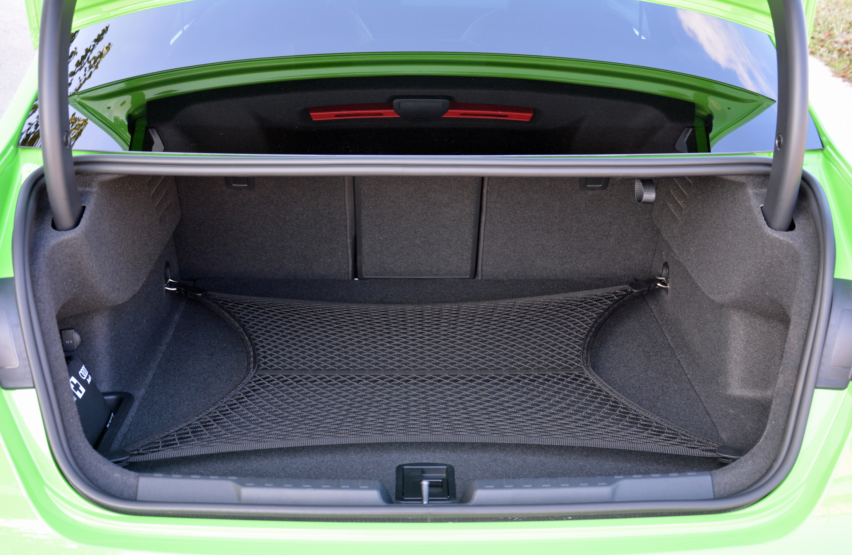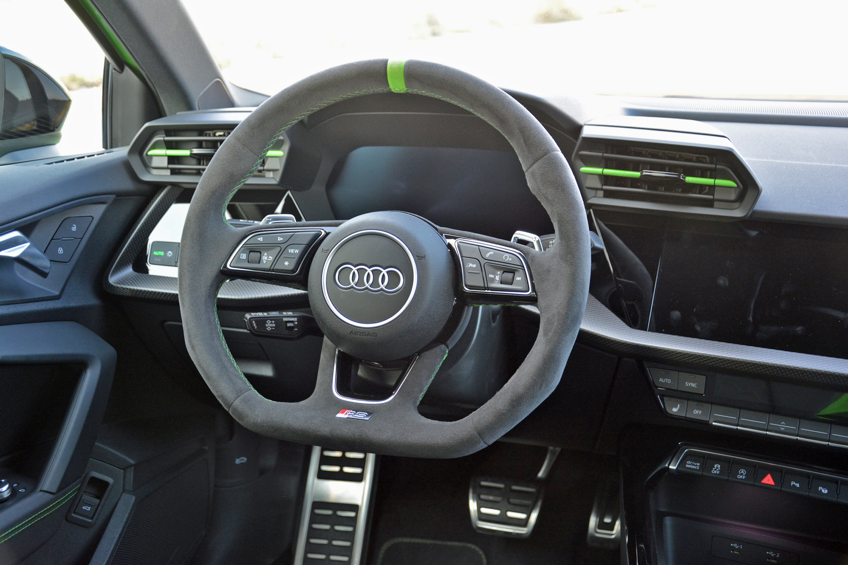 On the open road, the RS3 makes a good first impression. It’s quick, both off the line and when passing, and the suspension system is more compliant than you might expect considering its performance credentials. It’s also very mature: you don’t hear snaps, crackles, and pops from the exhaust system. That’s partially due to European noise regulations, which tend to be stricter than America’s, and I’m told the version that will disembark here will bark at least a little louder thanks to exhaust flap-related tweaks. That’s great news: the five-cylinder’s song is unique and worth cranking up. As it stands, however, the loudest part of the test car I drove is the green paint (more subtle colors will be available, too).