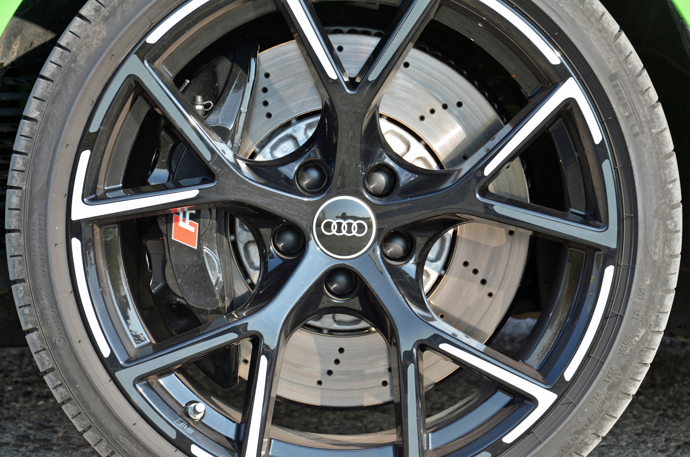 A standard RS3 comes with six-piston steel brakes, but you can option it with a carbon-ceramic brake system if you so choose, which cuts about 22 pounds of weight. Another option includes the head-up display, which Audi says is a first for the RS3.