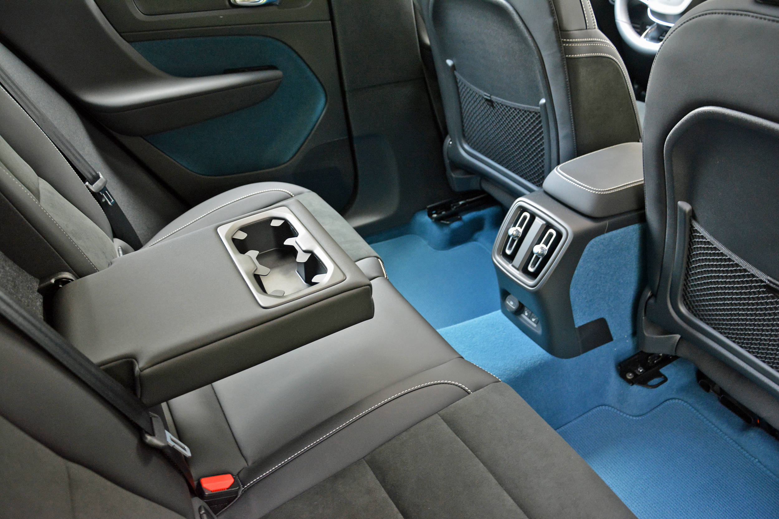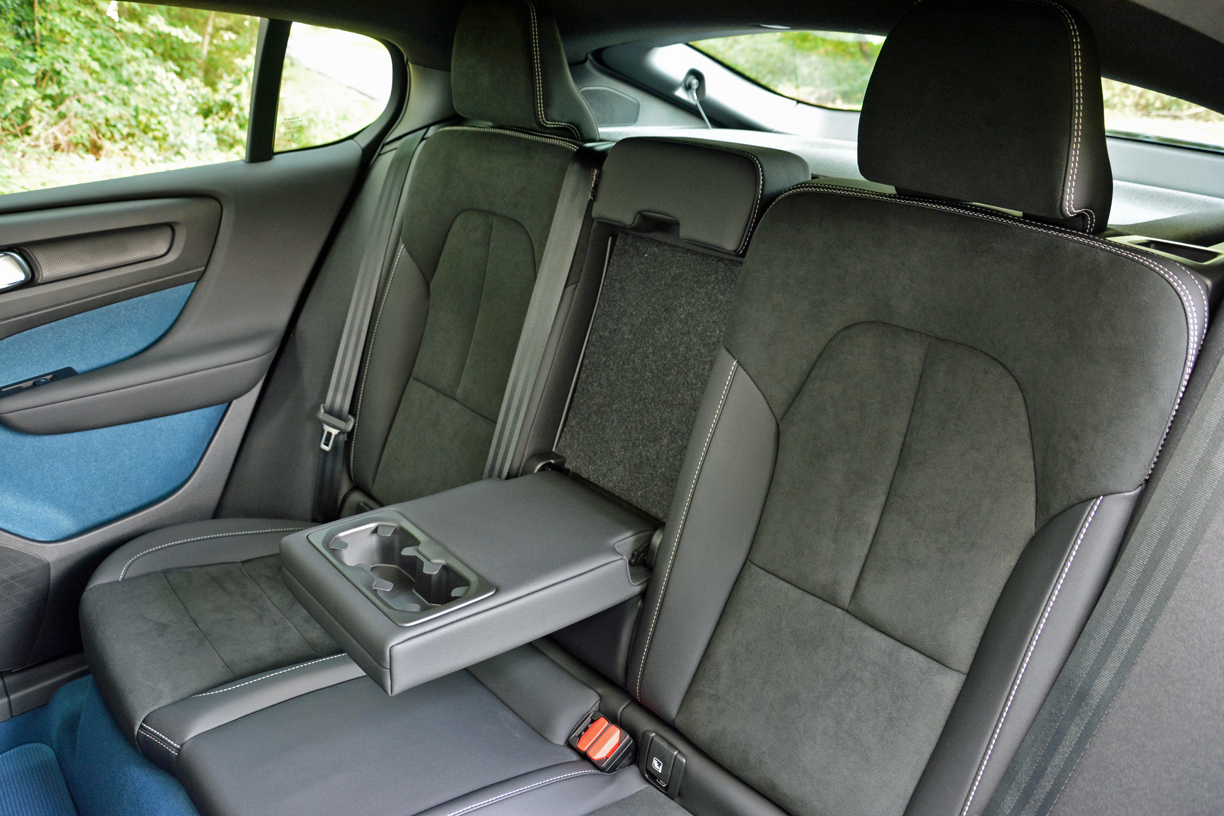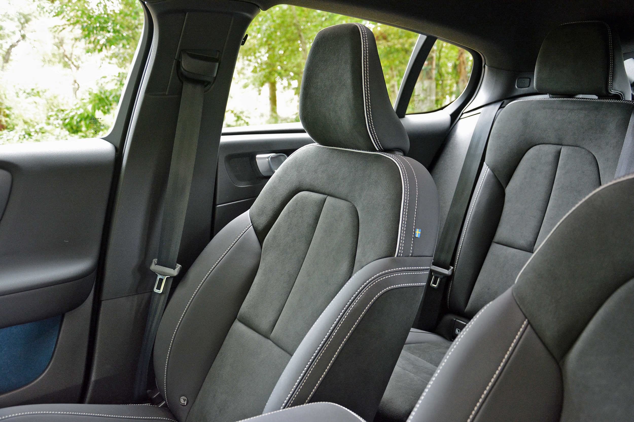 Volvo transplanted everything we like about the XC40’s interior into the C40, including numerous storage bins (there is even a wastebasket in the center console), user-friendly tech, and thoughtful packaging. Buyers will have some model-specific trim and color options to choose from, and the C40 is notably not offered with leather, but the visual differences are blatantly minor. It’s a pleasant place to travel in and the front seats make a good case for Volvo-built office chairs. Rear legroom is adequate unless you’ve got flamingo-like legs but headroom is predictably tight, even for the average adult.