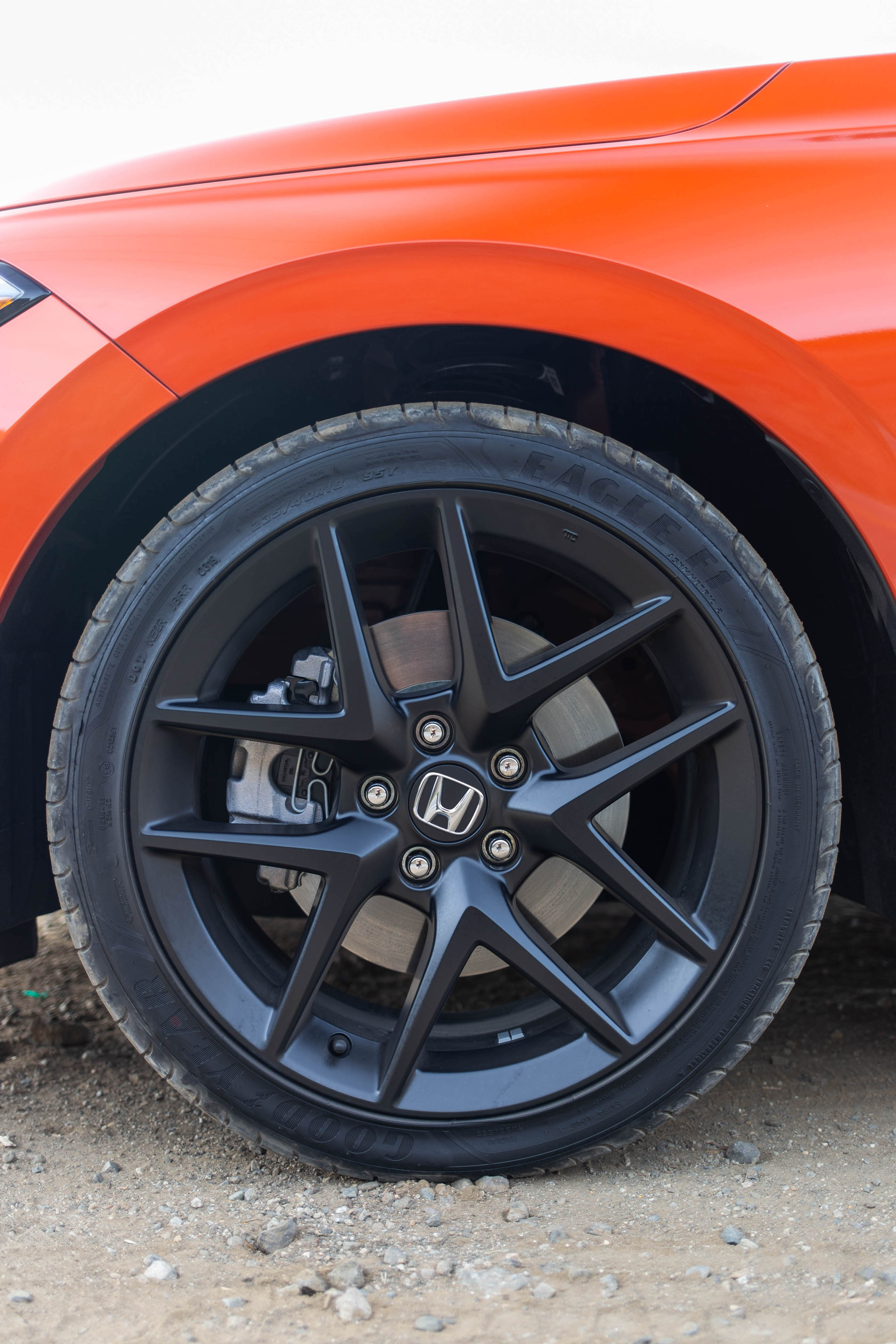There’s now a lighter flywheel, bigger brakes, and the rev-matching system out of the outgoing Type R—an Si first. The shifter throws have been shortened by 10 percent and the overall body and suspension stiffness and rigidity have been increased. Further Type R hardware includes front and rear compliance bushings and upper and lower rear B-arms. What distinguishes the Si from its non-Si brethren is its Si badge (obviously), a blacked-out honeycomb grille, black mirrors, 18-inch wheels, a rear spoiler, and silver dual exhaust tips. Offered exclusive with a manual, the interior comes with Si sport seats finished in red cloth, red contrast stitching, and red accents on the dash. A Bose sound system also comes as standard.