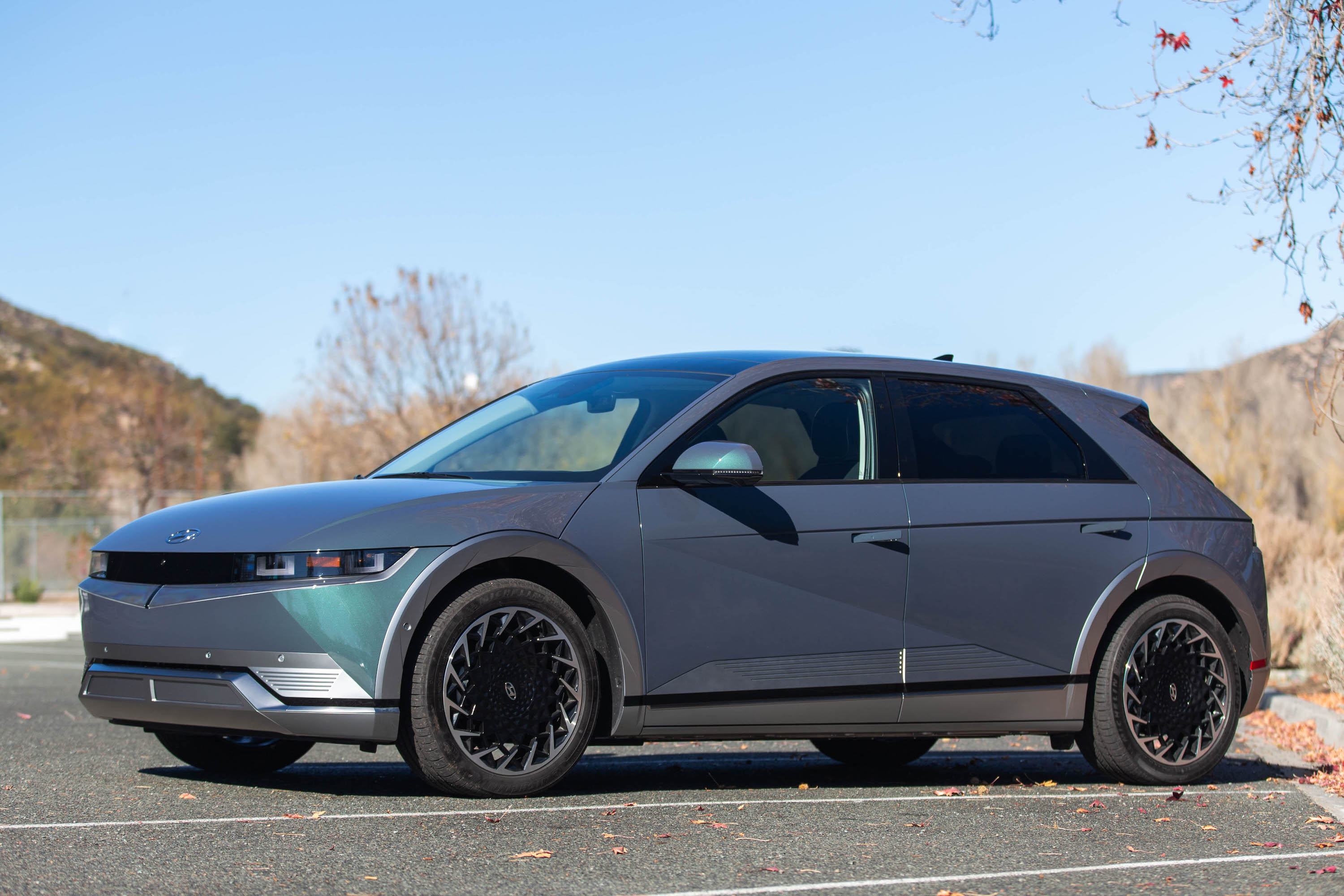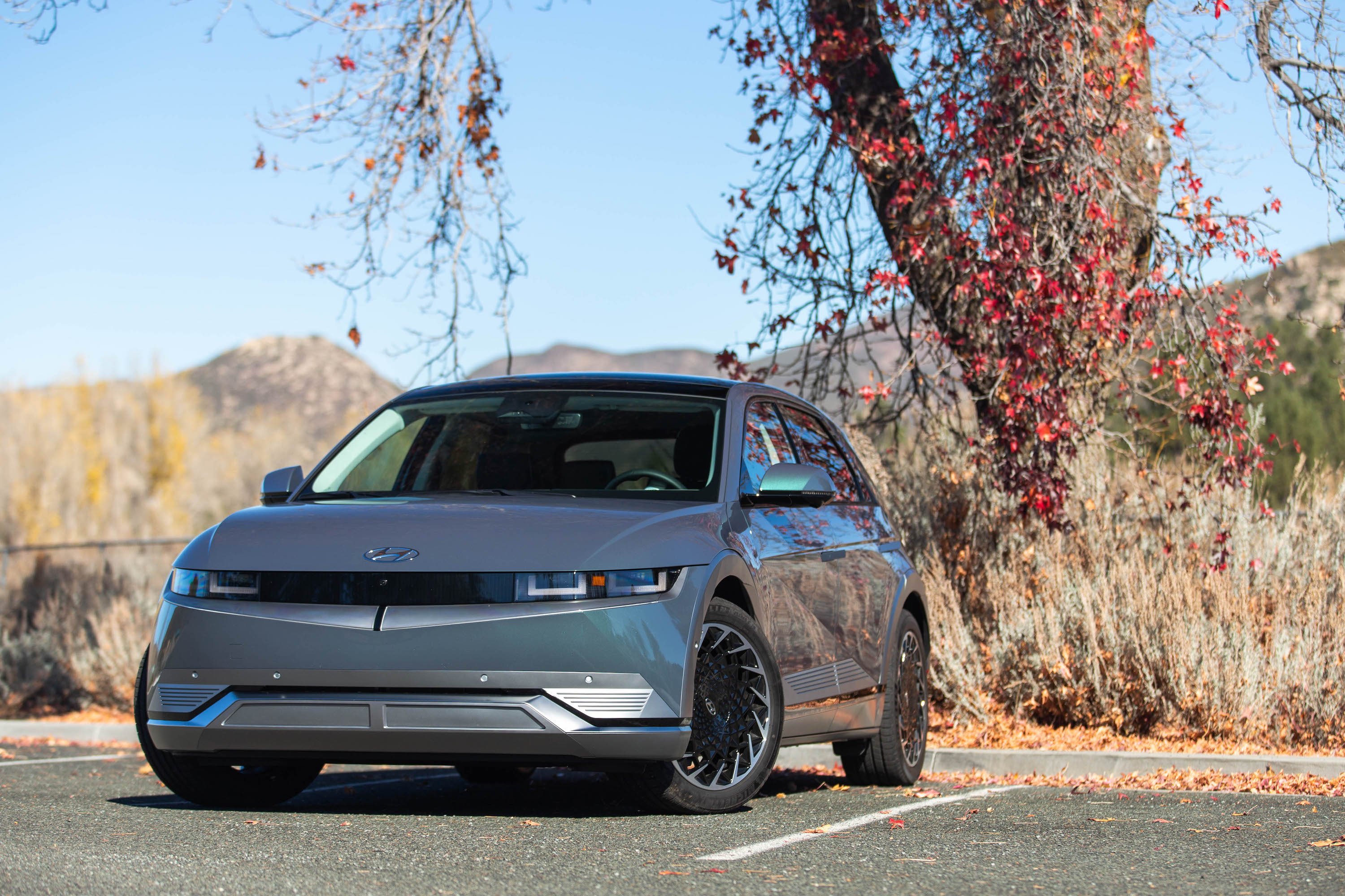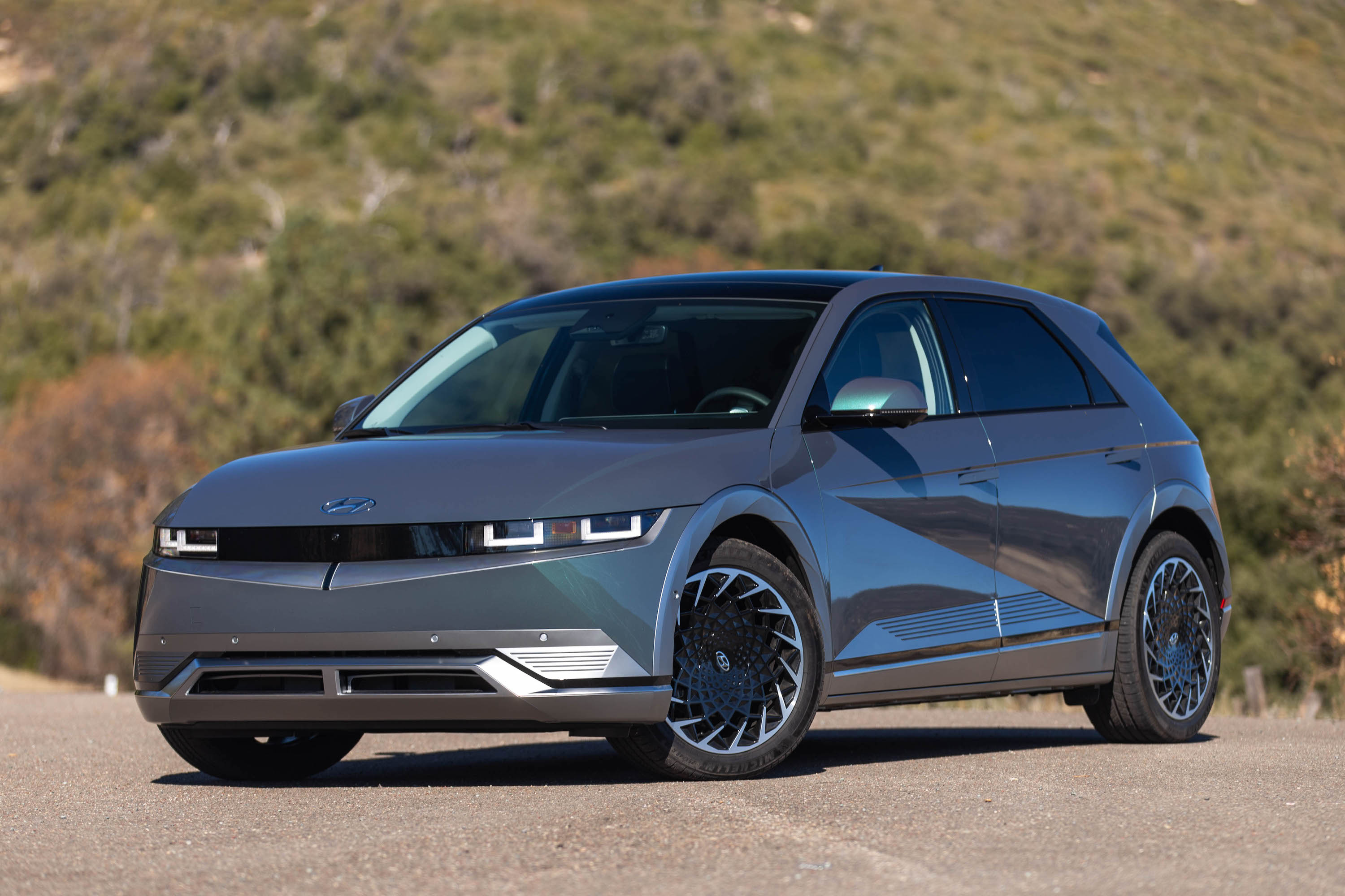 My colleague Rob Stumpf wrote up a comprehensive trim, range, and pricing story for the Ioniq 5, but know that the cheapest Ioniq 5 you can get is the standard-range version with the single-motor setup that is good for 220 miles of range and starts at $40,925. Top-tier Limited AWD models come with a suite of ADAS tech (including forward collision-avoidance assist, high-beam assist, front and rear parking sensors, and blind-spot collision-avoidance assist), 20-inch alloy wheels, front LED accent lighting, leatherette-trimmed heated seats, a memory eight-way powered driver’s seat, the sliding center console, a head-up display, and smart cruise control. MSRP comes to $55,725. The only option the test car came with were carpeted floor mats for $195; total MSRP came to $55,920.