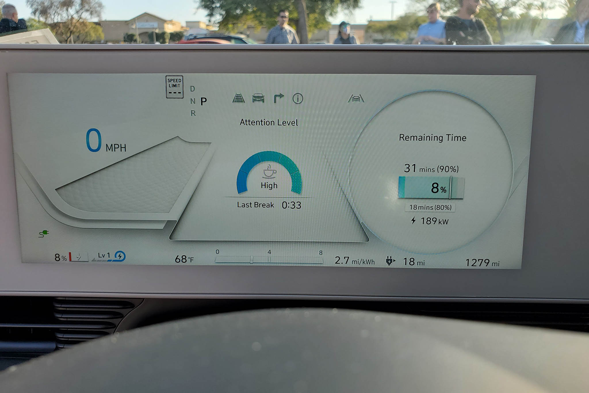 During a practical demonstration, a Hyundai rep plugged in a car that was at eight percent battery into a 350-kW charger. The display showed that it would take 18 minutes for it to reach 80 percent battery capacity and 31 minutes to reach 90 percent capacity. Given that 18 minutes is about the amount of time I spend at a gas station to use the bathroom and pick out a snack, this is a charge time I accept. The trick is finding an available and working DC fast-charging plug.