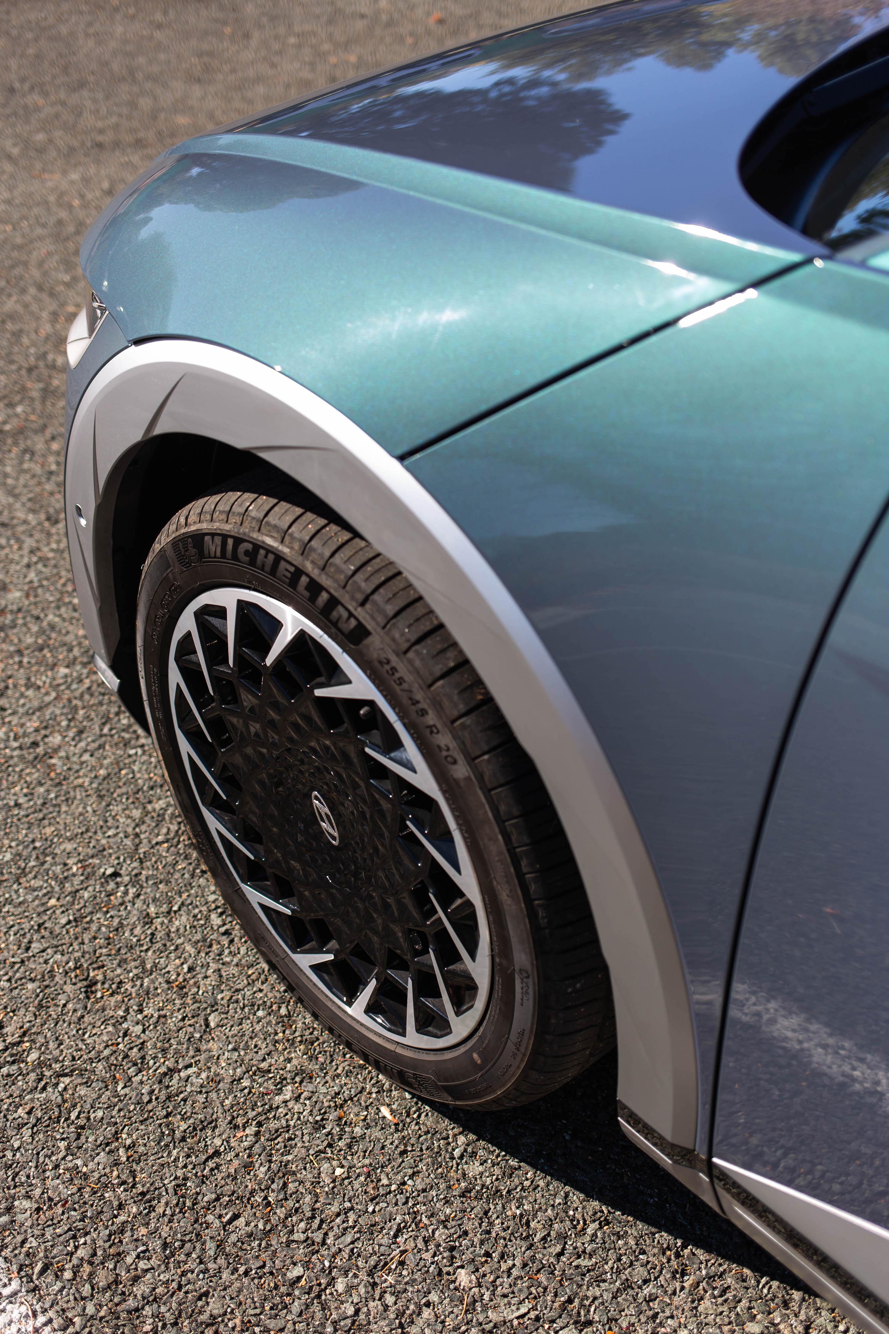 The first thing you should know about the Ioniq 5 is that it is large. In photos, it looks like maybe something the size of a Volkswagen Golf, as it is very Lancia Delta Integrale-looking in profile. In person, it’s quite big. As 100percentjake observed on Twitter, it still has the proportions of a hatchback, just increased by 130 percent. Additionally—and this shocked me when I found out—the Ioniq 5 has a longer wheelbase than the Hyundai Palisade; the former has a 118.1-inch wheelbase and the latter has a 114.2-inch wheelbase. The Ioniq 5 has the longest wheelbase of any Hyundai sold in North America, a rep confirmed. Also, it has a clamshell hood.