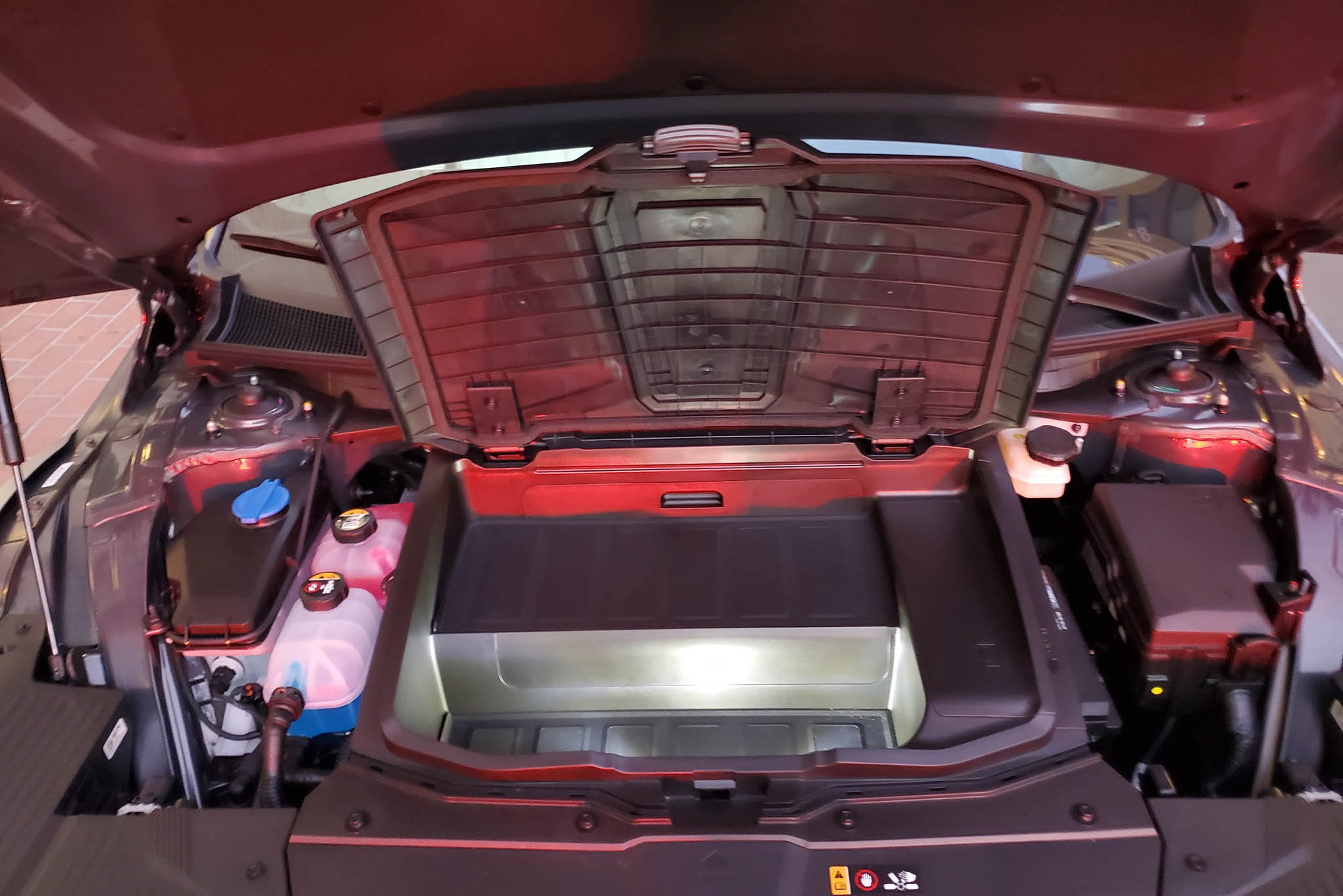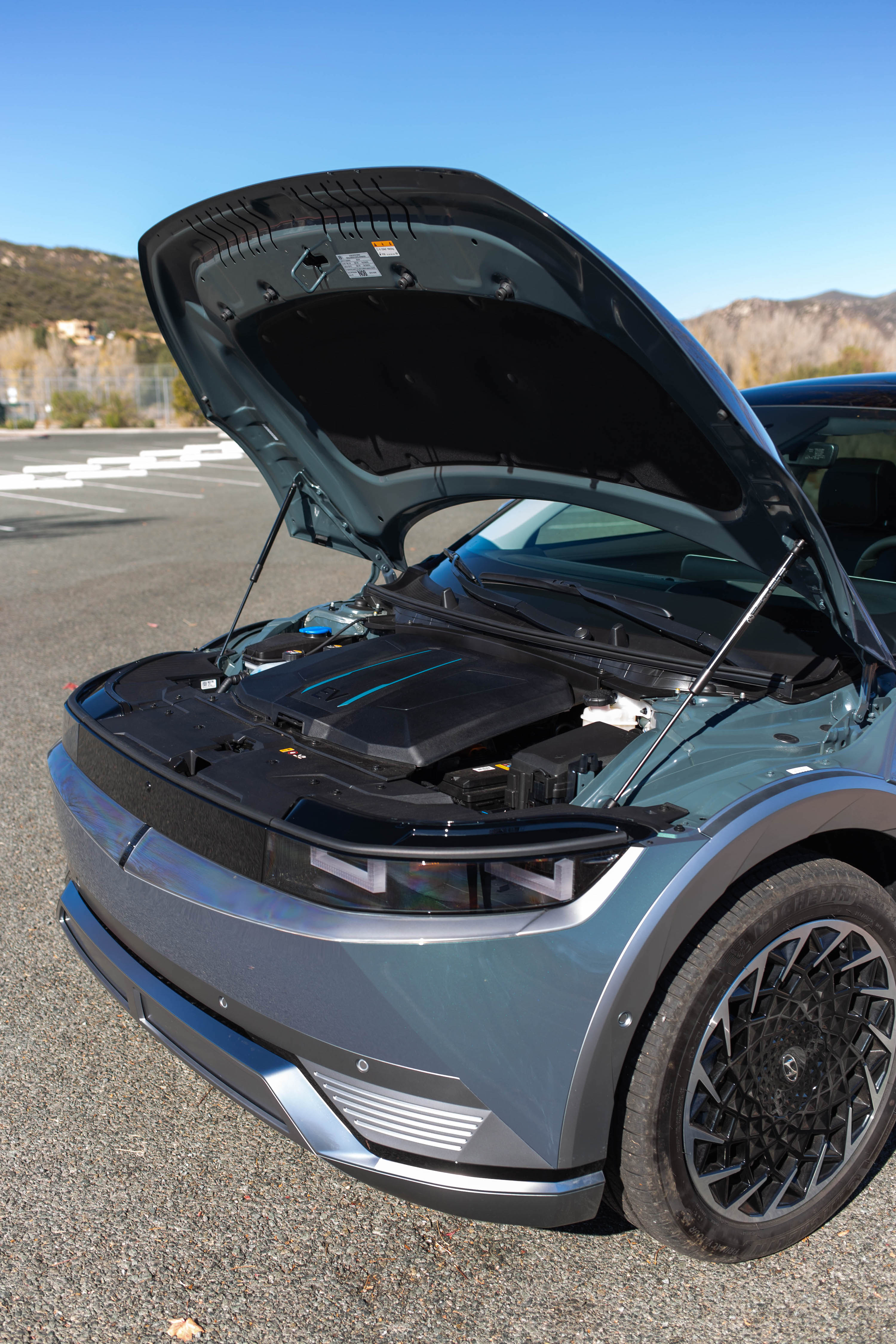 And! The Ioniq 5 has a front trunk. It’s nothing like a Tesla or Ford Mustang Mach-E‘s front trunk, as this one only amounts to 0.85 cubic feet of volume. But the question I asked the Hyundai reps was whether the car had a front trunk, not how useful it is. I’ll leave that second part up to you.