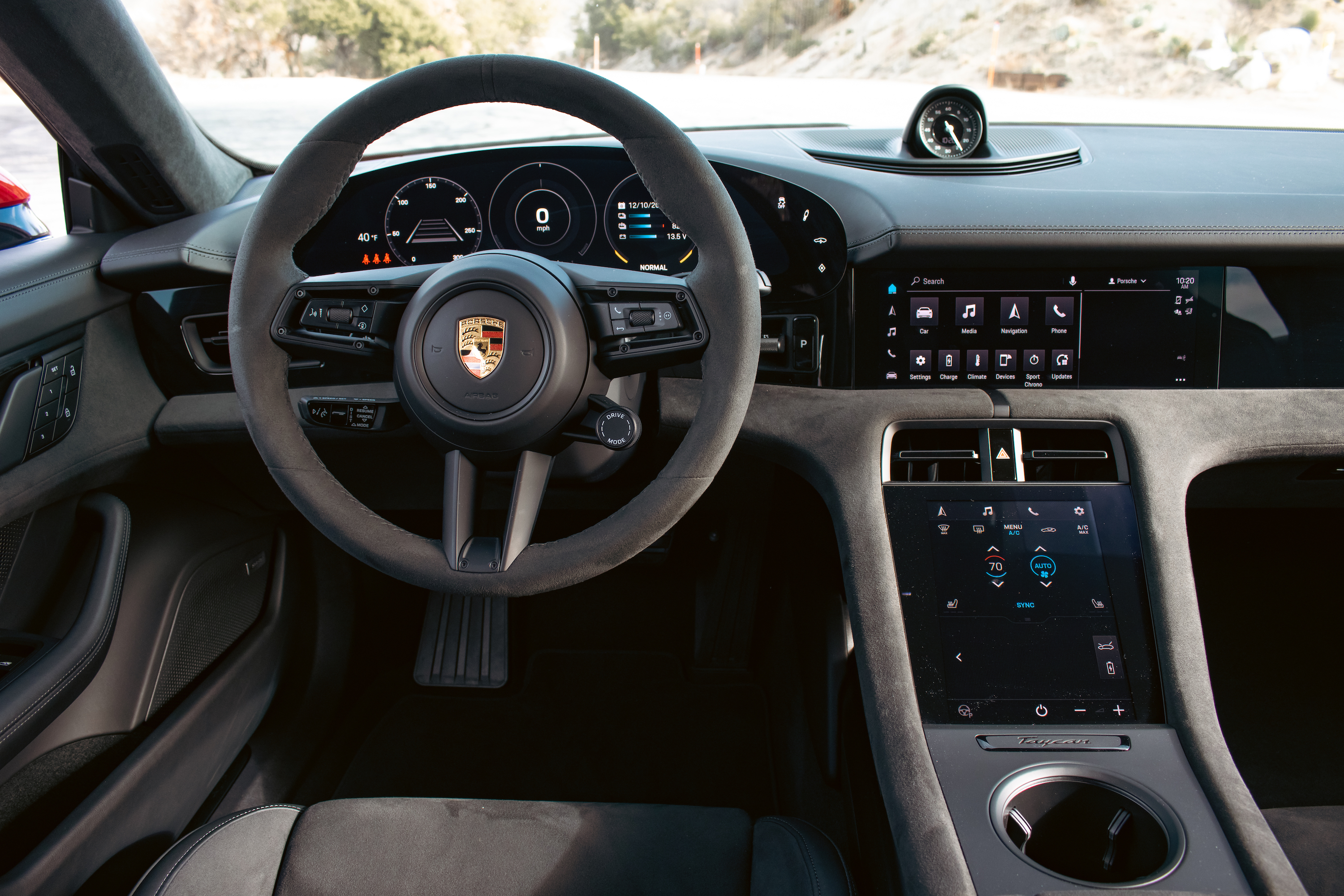 Really, what I like about this is what it represents: Porsche doing things its own way because it believes fully in what it’s doing. In conversation, a spokesperson said that the reason Porsche doesn’t have a one-pedal mode is because it believes in the sacrosanctity of inputs—steering wheel, accelerator, brake. That’s Porsche’s holy trinity, and one-pedal driving messes that up in a way that doesn’t matches with its values. In some ways it’s a self-imposed limitation, but even one-pedal driving fans have to appreciate that willfulness to say you know what, that’s not who we are—and the smarts to then engineer a regen braking solution that merges with the friction brakes to still deliver a significant boost to the range. And it certainly helped during my test. I started at the base of Angeles Crest Highway with 70 percent charge and 151 miles of range indicated. After covering over 90 miles of extreme elevation changes, full-attack corners and more than one acceleration test, I rolled into the charger on the other side of the mountains with around 40 miles left on 18 percent charge.