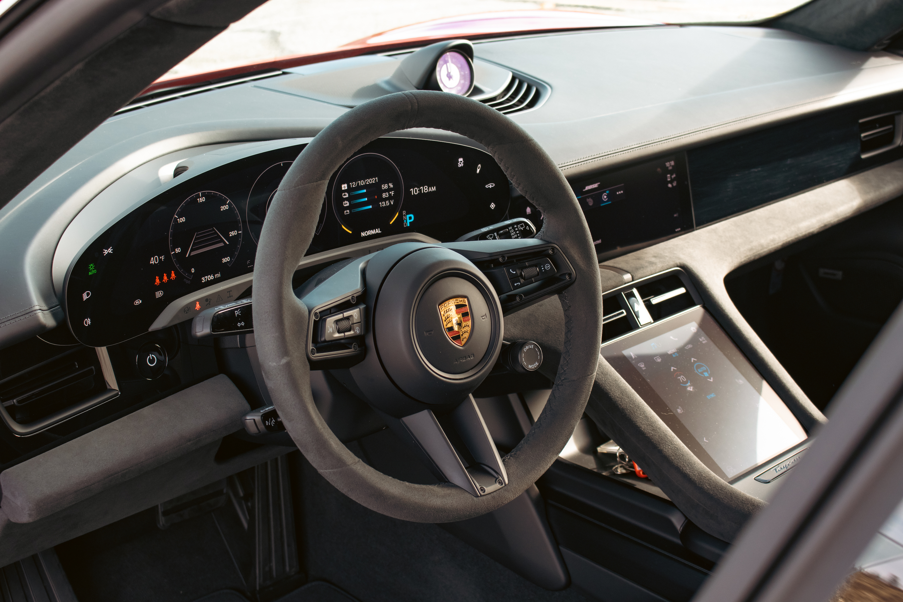 Porsche offers full-speed radar cruise control and a stronger lane-centering system as a combined $3,610 option under the InnoDrive moniker; it’s not a hands-free system, but it did take an enormous amount of strain out of the 70-mile return leg of my trip that sent me straight through the middle of Los Angeles during Friday rush hour. The lane centering function did take to doing these long parabolic arcs within the lane—not quick enough to be considered pinballing, but definitely perceptible. Still, it was a smooth–and without the stress that driving a high-strung ICE car through heavy traffic can bring, dare I say enjoyable?—way to get through a typically hellish time. Though on the comfort side, the Sport seats felt a little too thin and lacked enough lumbar support for my screwed-up lower back. Of course, seat comfort is highly subjective. What’s not subjective is that Porsche’s options strategy is in full swing here, and my $161,000 test car didn’t come with ventilated thrones.