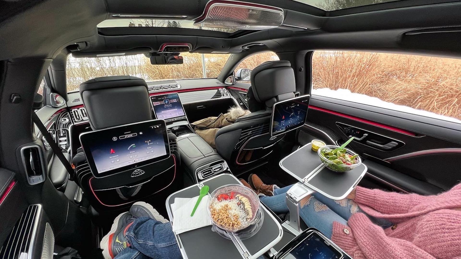 For this very reason, I took my wife on a Valentine’s Day date—not to a fancy restaurant for brunch, but to the back seat of the Maybach. Rather than sitting on uncomfortable chairs at a trendy, overpriced place in a hip neighborhood, we picked up some goods from our favorite spot, posted up at a charming park near our home, and turned the Maybach into a $200,000 picnic basket.
