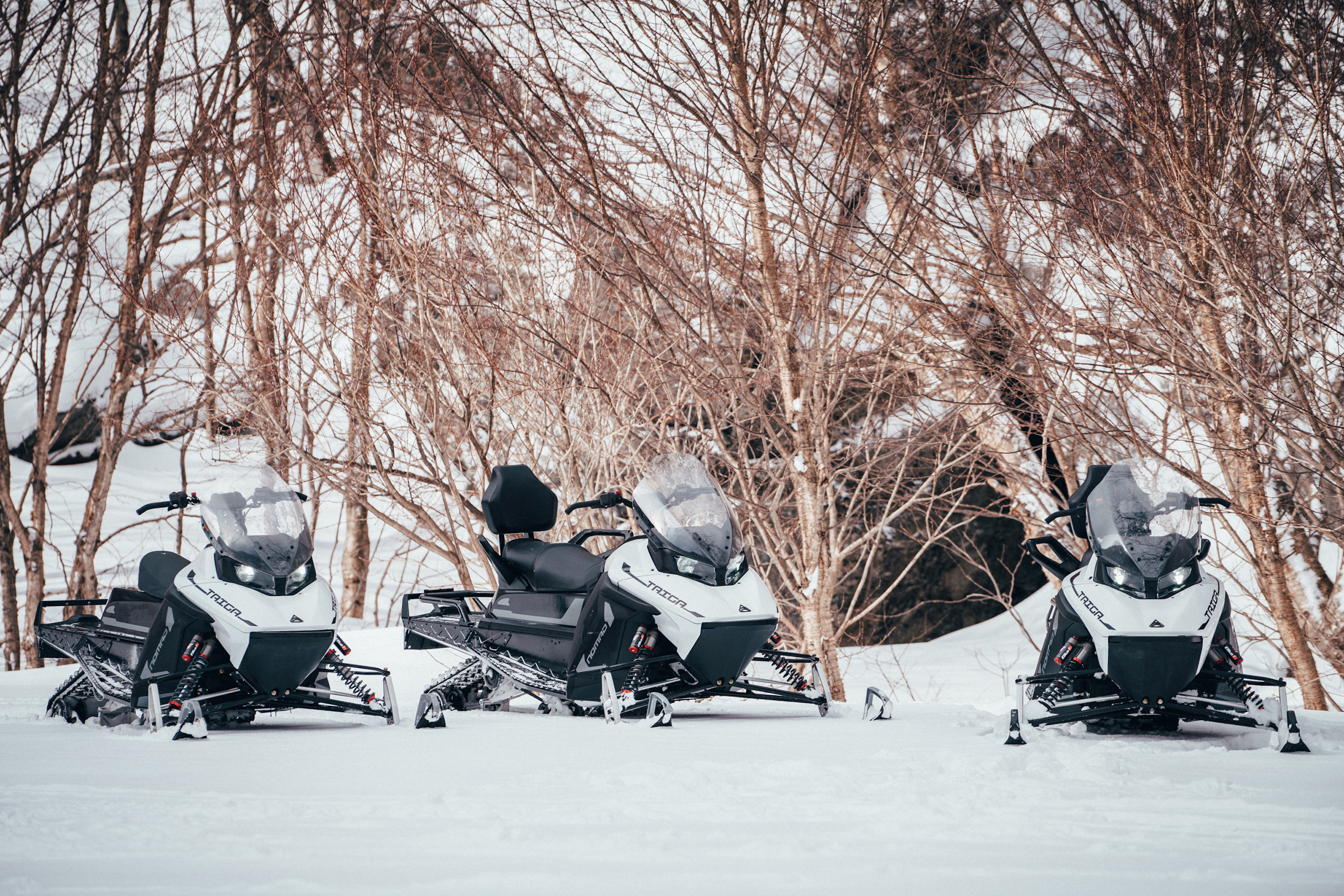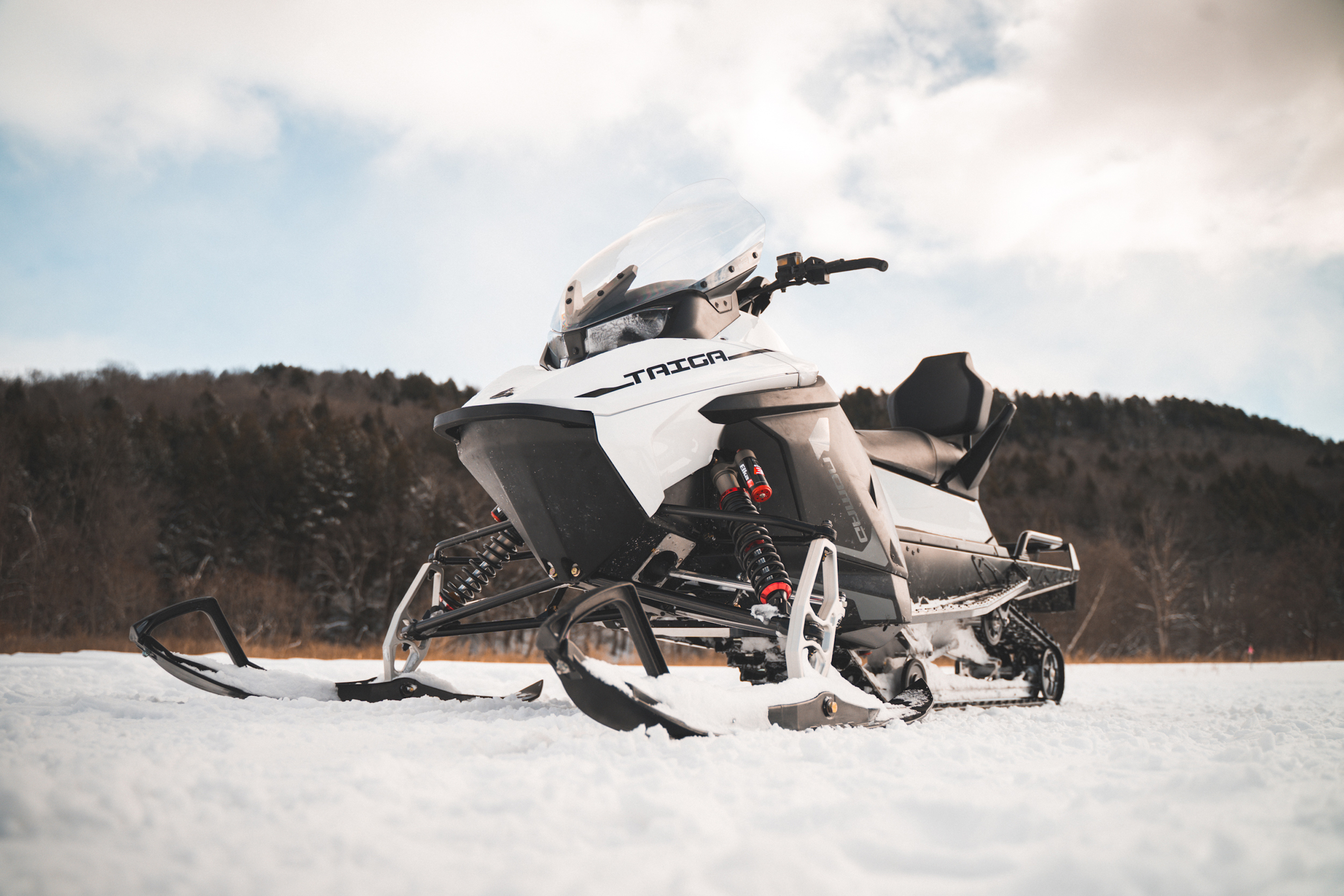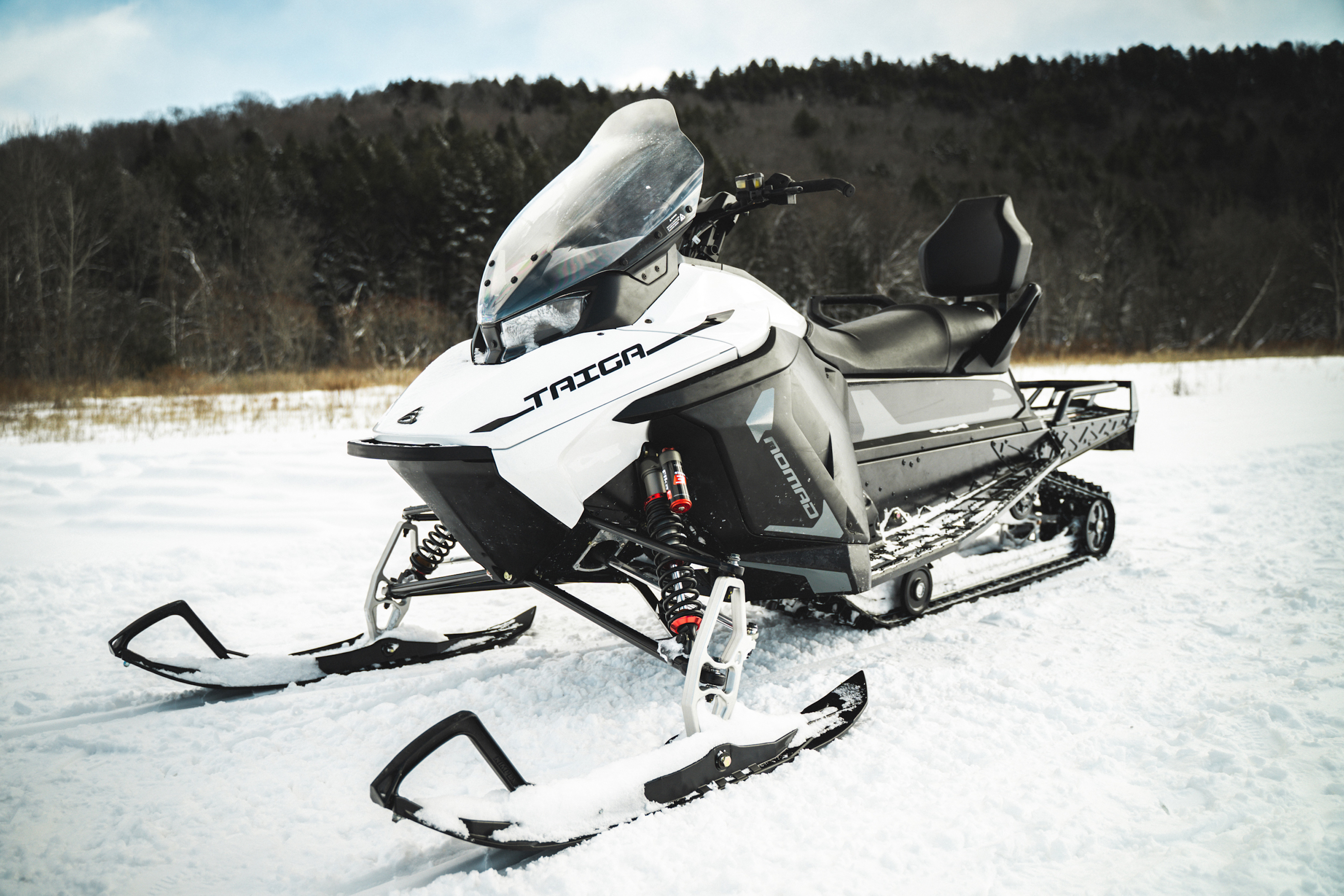 Looking at the Nomad, it’s not that different from a conventional snowmobile—which was perhaps the entire point. You can eventually expect three different snowmobiles from Taiga: the Atlas for trail performance, the Ekko for mountains, and this, the Nomad, for more all-around tasks like trail-running and towing stuff. That’s why it has an especially wide, 42.3-inch front track and a towing capacity of 1,125 pounds.