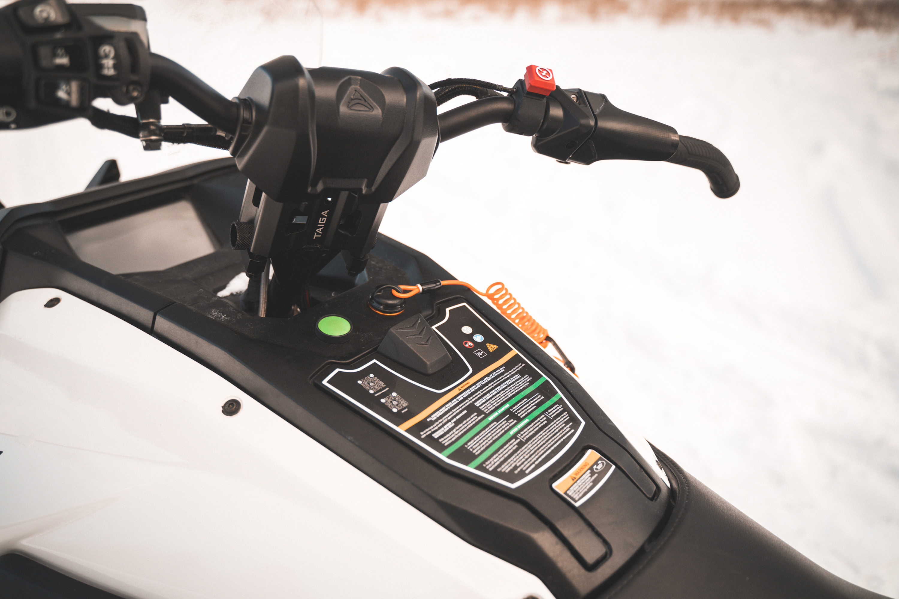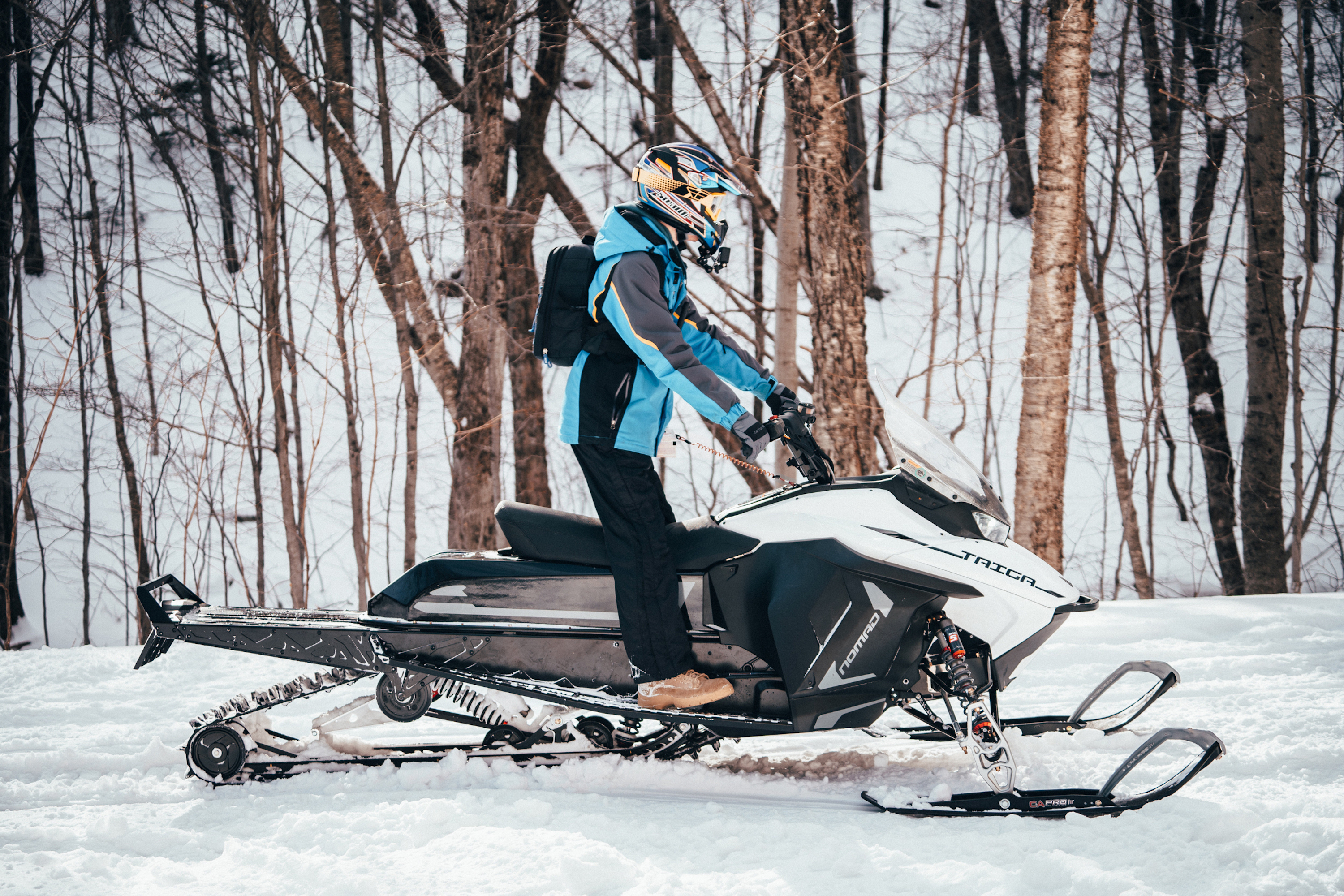 The biggest adjustment you have to make while riding the Nomad is there really isn’t any obvious indication that it’s on (just like an EV). There’s no idling engine to hear or vibration to feel. You have to check that the LED driver information cluster is glowing blue to know when it’s go time. After that, operating it is largely the same as operating a gasoline-powered snowmobile. The accelerator is on the right and the brake is on the left. It is very easy to get the hang of.