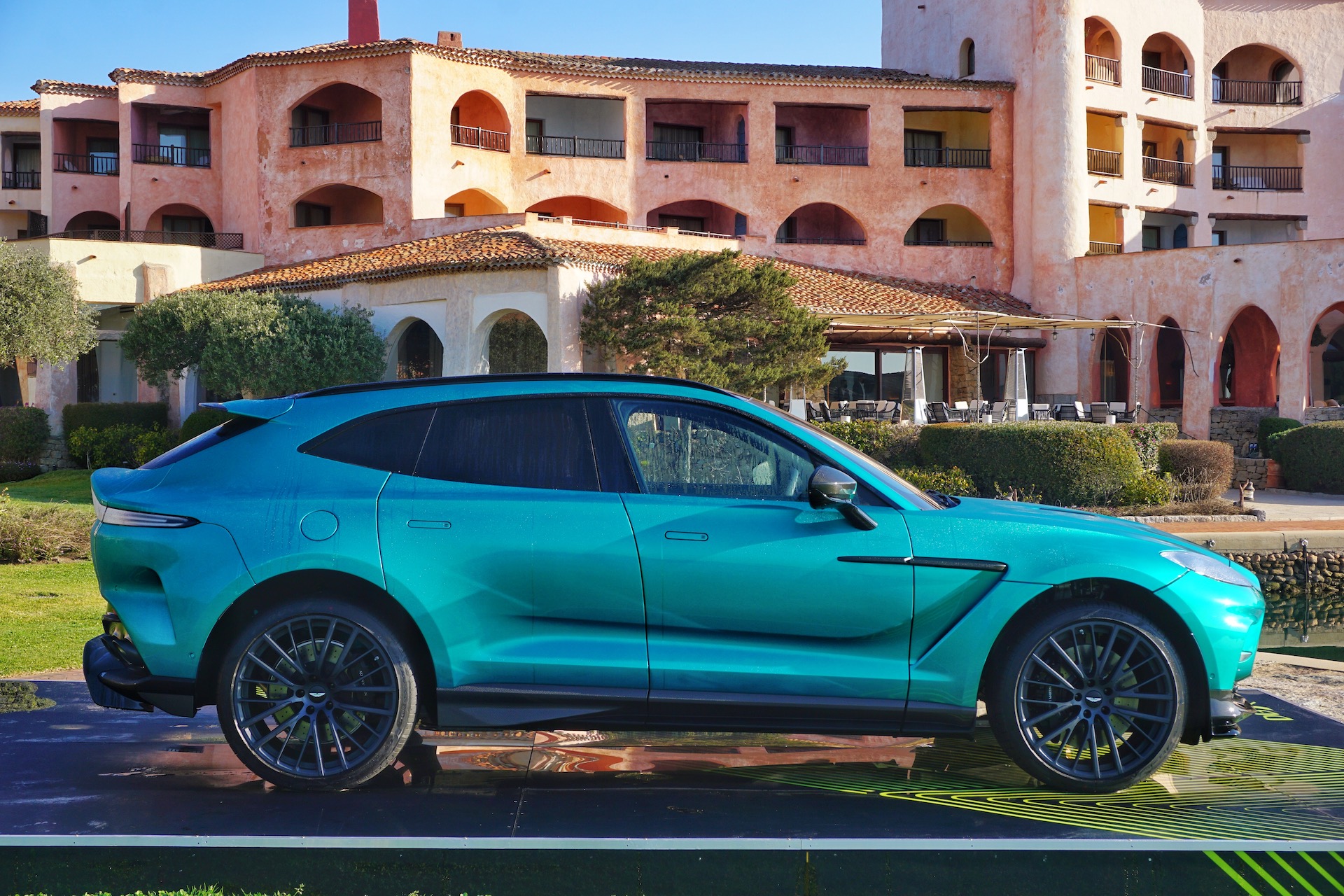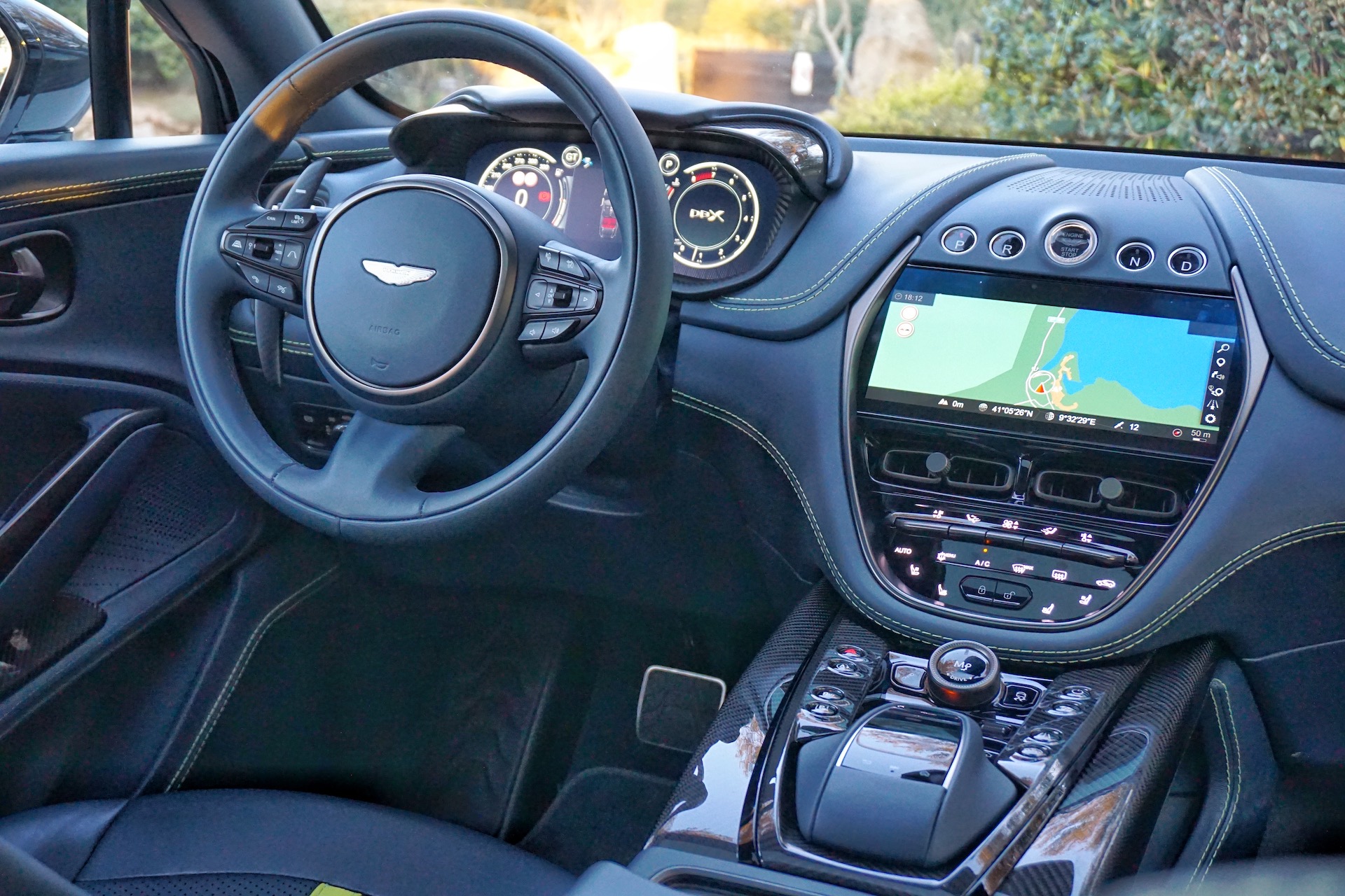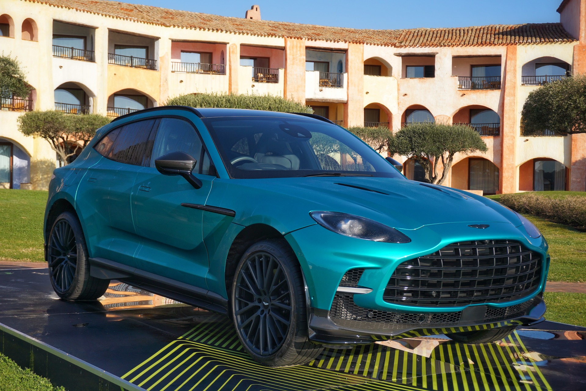 At this time of year, as it turns out, most cars traversing the island’s mountainous roads are either farmers carrying goats in Fiat Pandas (a hatchback) or European semi-trucks, neither of which exceed 35 mph. Also, passing is nearly impossible. In this scenario, the DBX707 rode like a plush luxury SUV in GT mode, absorbing road imperfections without the slightest thump from the suspension or creak from interior panels. Given the added performance, engineers actually revised the entire suspension to improve traction and comfort. Dampers were re-tuned for pitch and roll to provide more controlled motions behind the wheel, while the rear suspension was softened to make sure those occupants don’t projectile vomit their meals onto their laps due to motion sickness.