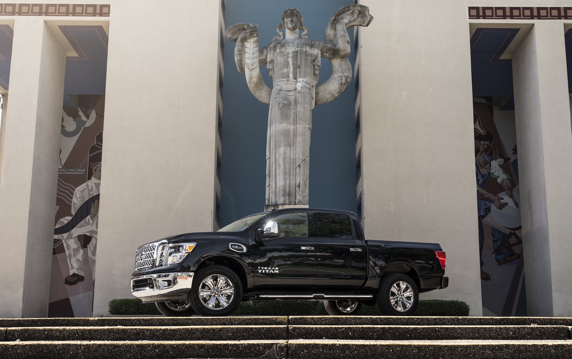 Which is all to say that the new Texas Titan is sufficiently on-message. The special options package, rolled out at the annual Texas State Fair, will be available on all 2017 Nissan Titan models, both half-ton and XD crew cab, two- and four-wheel drive. In any configuration, seen at high noon from the right angle, the Texas Titan has enough bling to blind a Buc-ee’s attendant: The exhaust tips, grille, running boards, and 20-inch wheels are all chrome. There are oversized badges strewn about the body, replete with a large outline of the state because, in the words of Nissan truck boss Fred Diaz, “You almost can’t overmarket Texas to Texans.” But, unlike the Dallas Cowboys Edition Ford F-150 (note: real thing), Nissan will sell this one at dealerships outside the Lone Star state.
