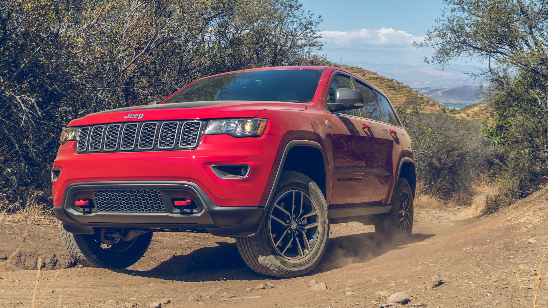 Outwardly, the Trailhawk is set apart from the rest of the Grand Cherokee lineup by red tow hardware, those 18-inch wheels, and a matte hood treatment. And badges. Lots of badges. But functionally, the Trailhawk sets itself above the rest of the lineup with a stride into the Grand Cherokee’s sweet spot. Adventurous and capable, but most of all, enabling. The shift in attitude and capability makes it the Grand Cherokee we’ve wanted most since the advent of the SRT.