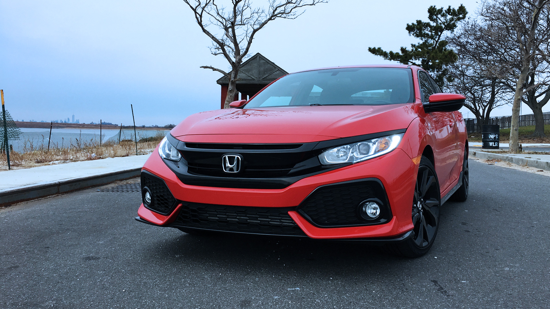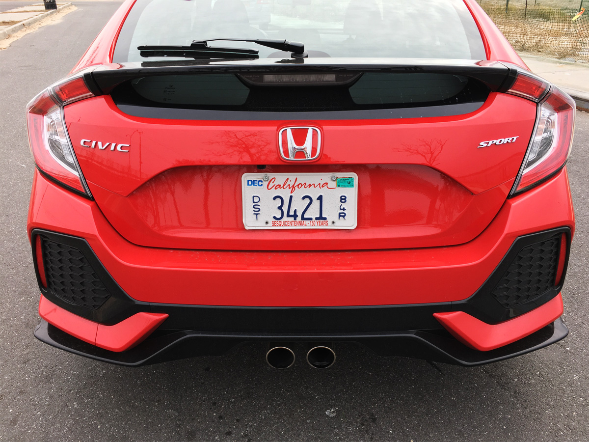 THING THEY DON’T WANT YOU TO NOTICE, BUT YOU DO ANYWAY: It’s not as visually appealing as the Civic sedan. That car has the four-door-coupe looks of a Mercedes-Benz CLS-Class; the hatchback, on the other hand, looks like the designer watched too much Speed Racer as a child.