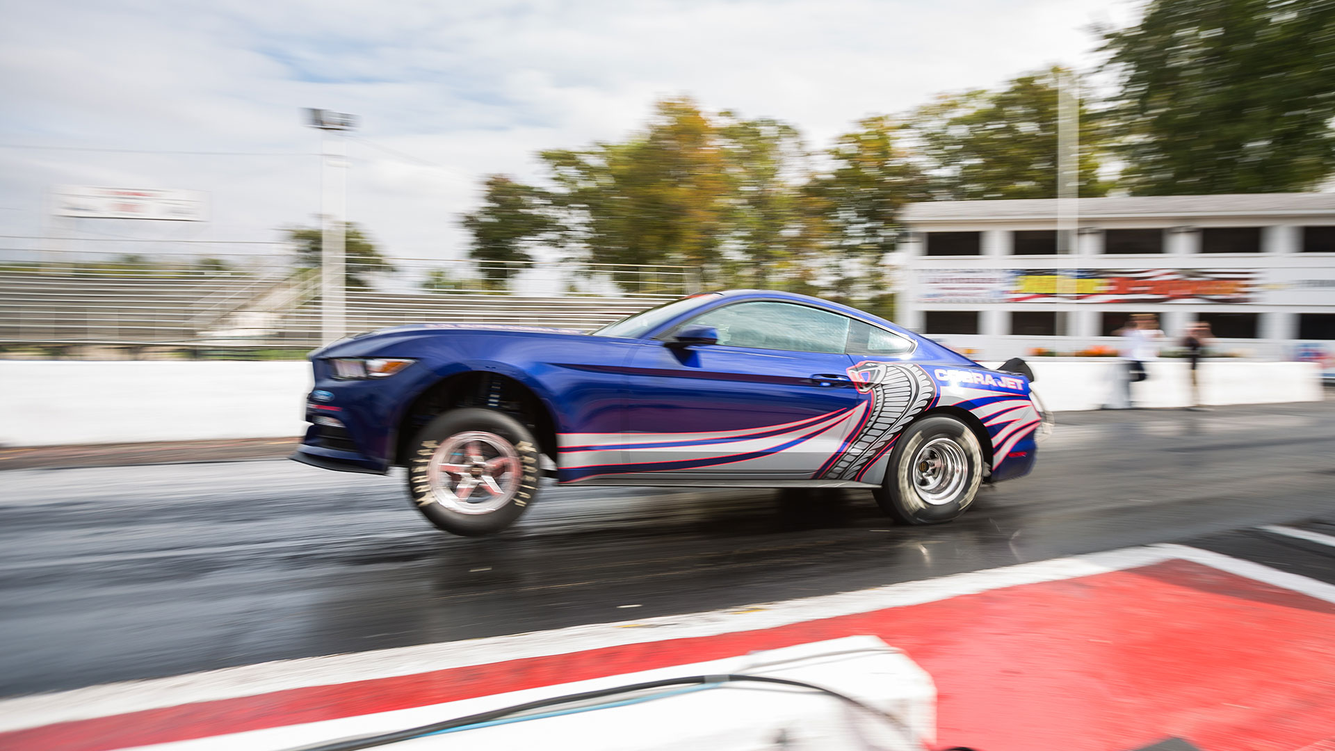 No details on the blown 5-liter V8 yet, but Ford did offer a video. Pro bull riding fans call it the gnarliest eight seconds in sports. But watch the clip below, a new Cobra Jet yanking the front wheels and banging gears and demolishing a quarter-mile pass.