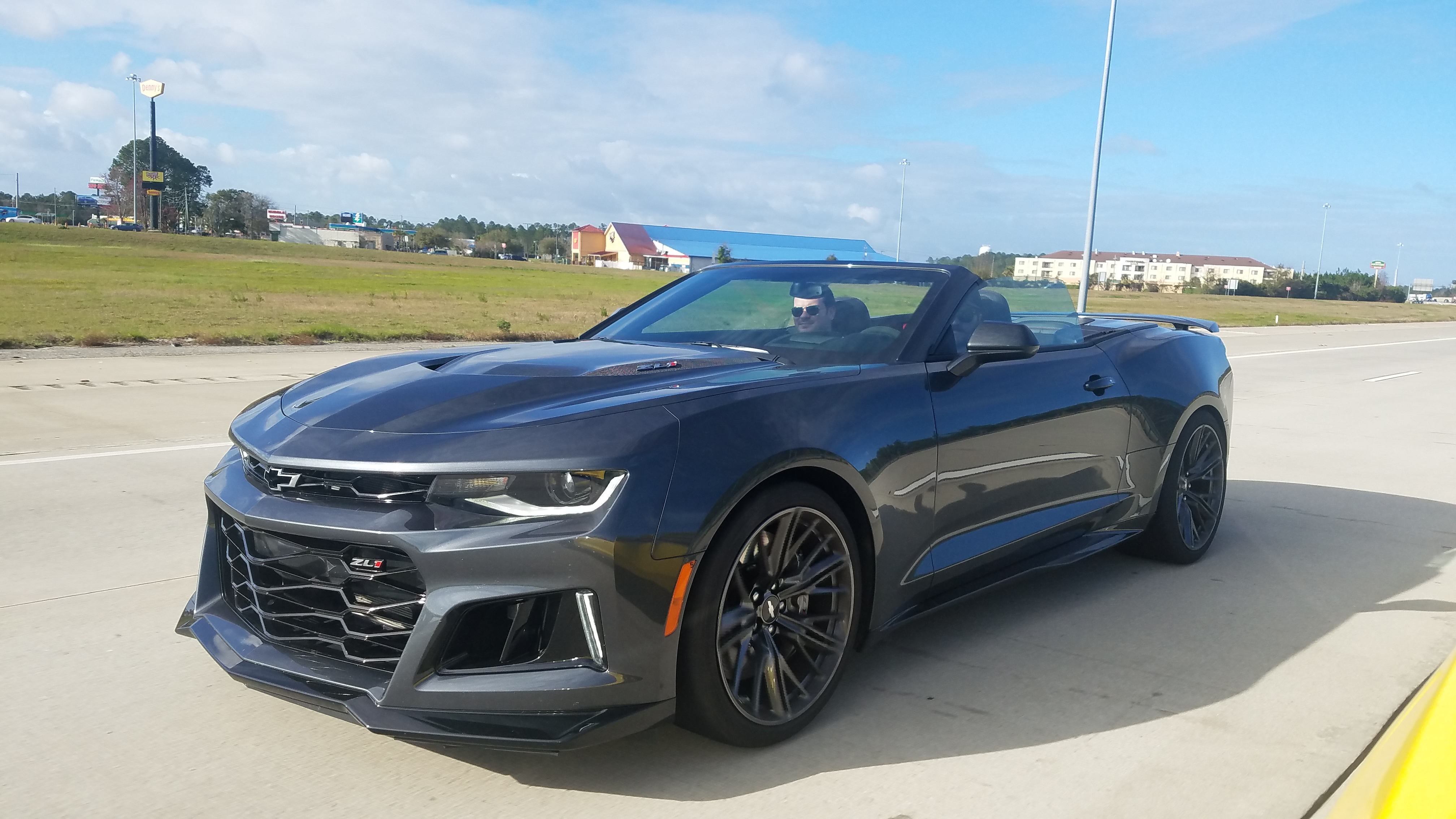 The ZL1 convertible plops a hefty 4,110 pounds on the scales with a manual transmission compared with 3,883 for the coupe. So while the hardtop ZL1 will be the correct tool for track, the convertible offers a literal eye-opening advantage: You can actually see out of it when the cloth top is down. (The coupe’s tangled sightlines and dark bowels, like the view from inside a python’s belly, remain the Camaro’s least-winning feature). There is one trade off for the convertible’s airy sensory pleasures: There’s no electronic limited-slip differential, because its sizable control unit wouldn’t fit in the ragtop’s rear. That smartly engineered differential is a Camaro trump card, with multiple fine-tuned settings that gradually relax electronic nannies while upping the performance ante. Pulling into Daytona Beach at twilight, I salute the standard Recaro buckets that leave my back and body mostly unscathed after an 11-hour trip. Ride quality is firm but surprisingly livable, especially in the suspension’s softest Tour mode.