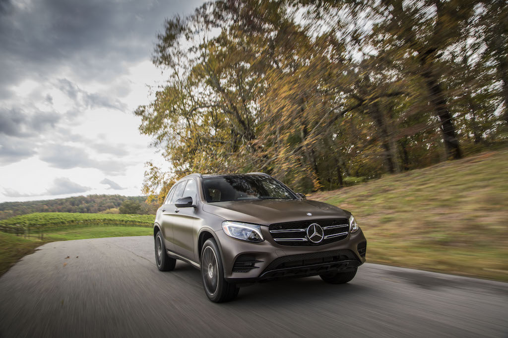 Under the hood, the GLC300 base holds a turbocharged 2.0-liter, four-banger that produces 241 horsepower and 273 pound-feet of torque. A perfectly geared nine-speed automatic transmission sends power to the rear wheels (the 4Matic option is AWD). The base 300 also comes with 18-inch alloy wheels, flashy LED daytime running lights, adaptive suspension damping, a power liftgate, power-folding mirrors, automatic wipers and roof rails. You’ll also get forward collision warning and a drowsy driver warning system.