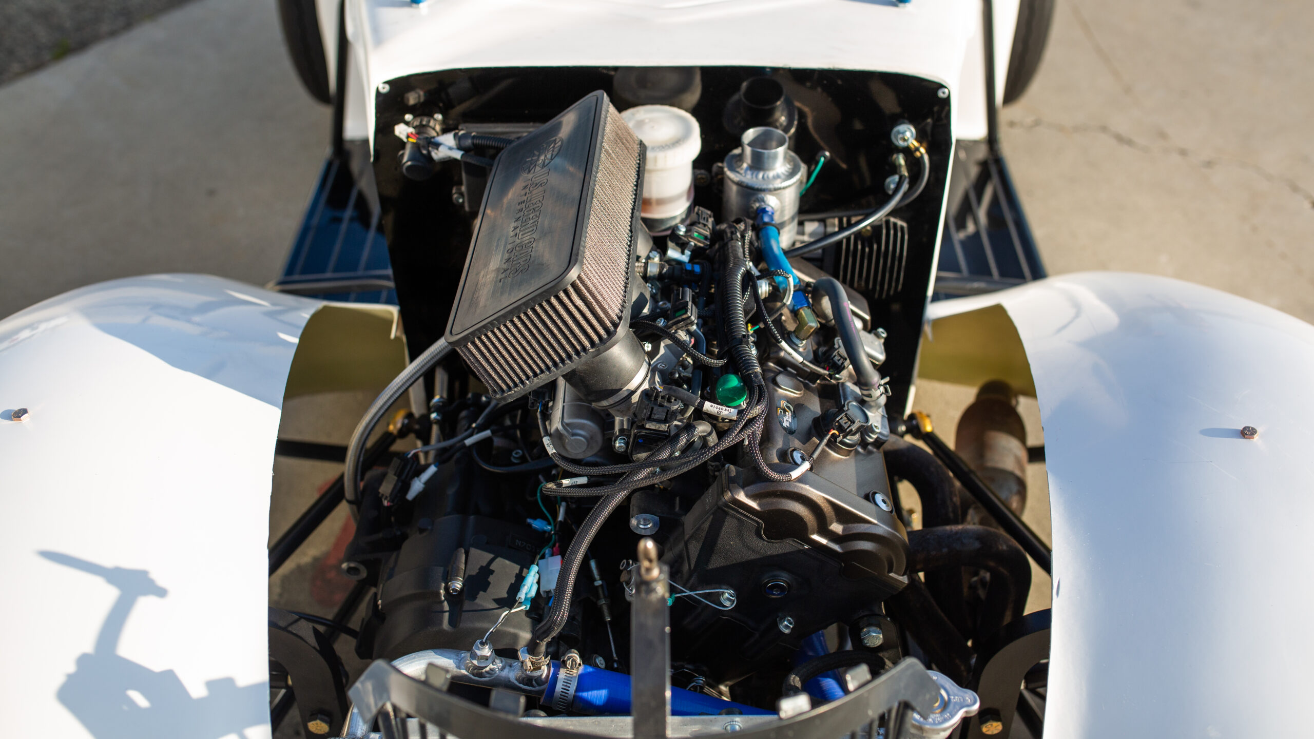 The Legend car itself is a concoction from the early ‘90s, designed to be an affordable way to go spec racing. Born from a 5/8ths scale “dwarf” version of ‘30s and ‘40s American coupes like a 1934 Ford Coupe or a 1937 Chevy Coupe, it’s built on a tube frame with a fiberglass body and meant solely for racing. Before 2018, the cars came specced with a Yamaha 1,200cc four-cylinder but are now blessed with an effervescent and powerful 847cc Yamaha FZ-09 individual throttle-bodied triple and its six-speed pseudo sequential gearbox.
