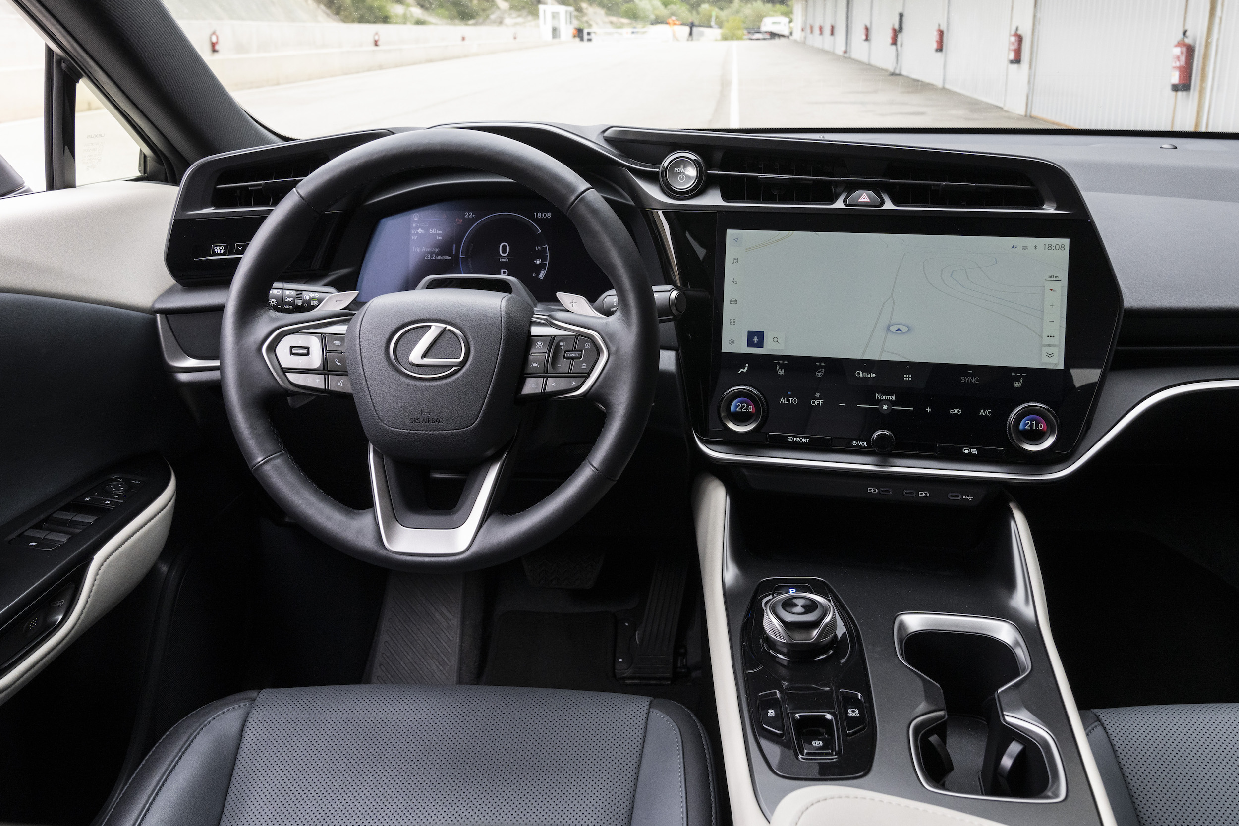 My time behind the wheel of the RZ was limited only to a few laps of the Parcmotor Castellolí closed-course track located on the outskirts of Barcelona, a roller coaster-like circuit that would be tremendously fun in a souped-up, 1,275cc Austin Mini. As a result, this review won’t have any public-road impressions. I drove a pair of early pre-production prototypes—so I can’t comment on final interior build quality—though they felt nicer inside than some regular production cars. Both were quick off the line, smooth, quiet, and comfortable—my first impression was that the RZ had the same character as other Lexus crossovers, and that’s a good thing. Body roll wasn’t excessive, and the braking system felt better and more natural than the average EV’s.