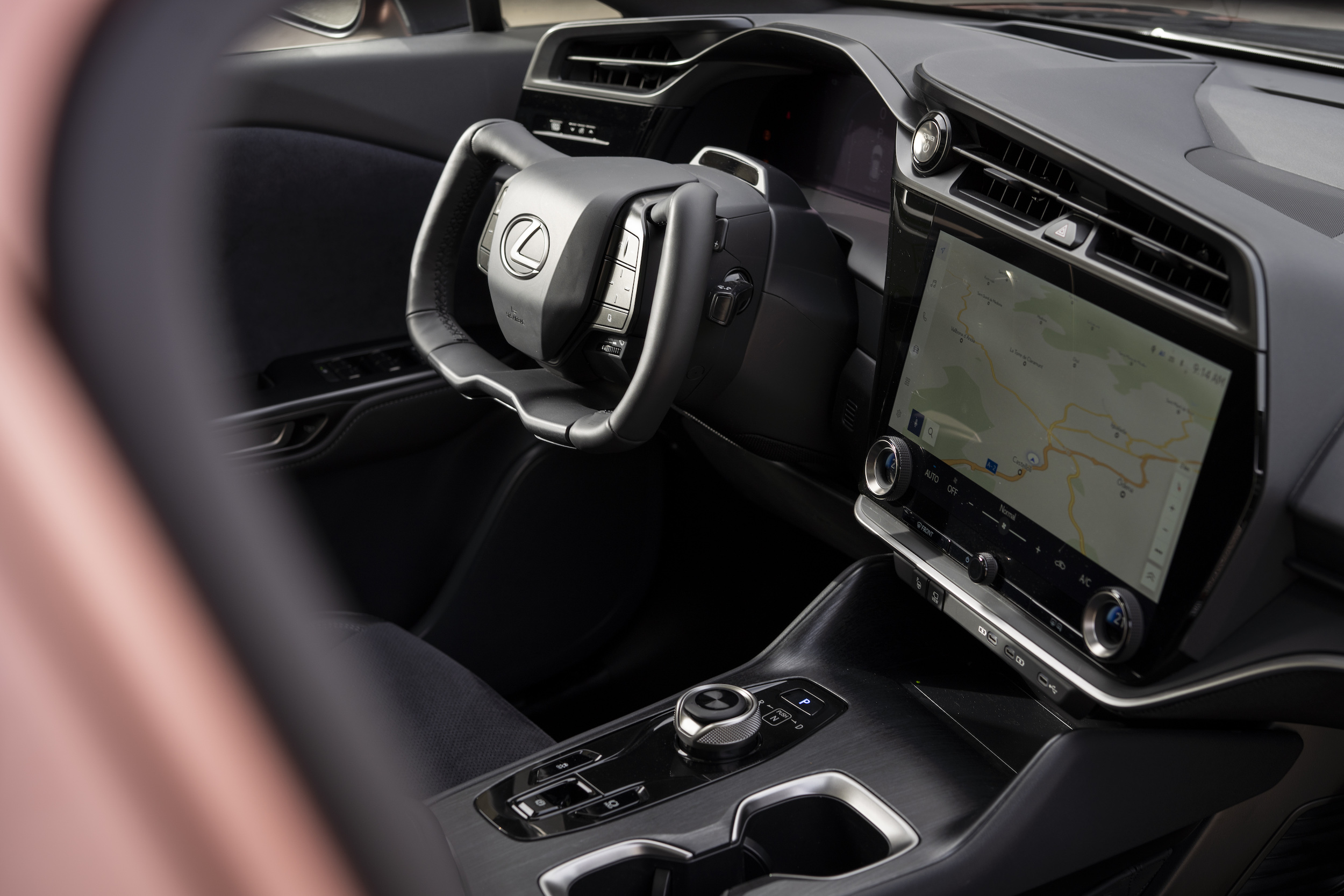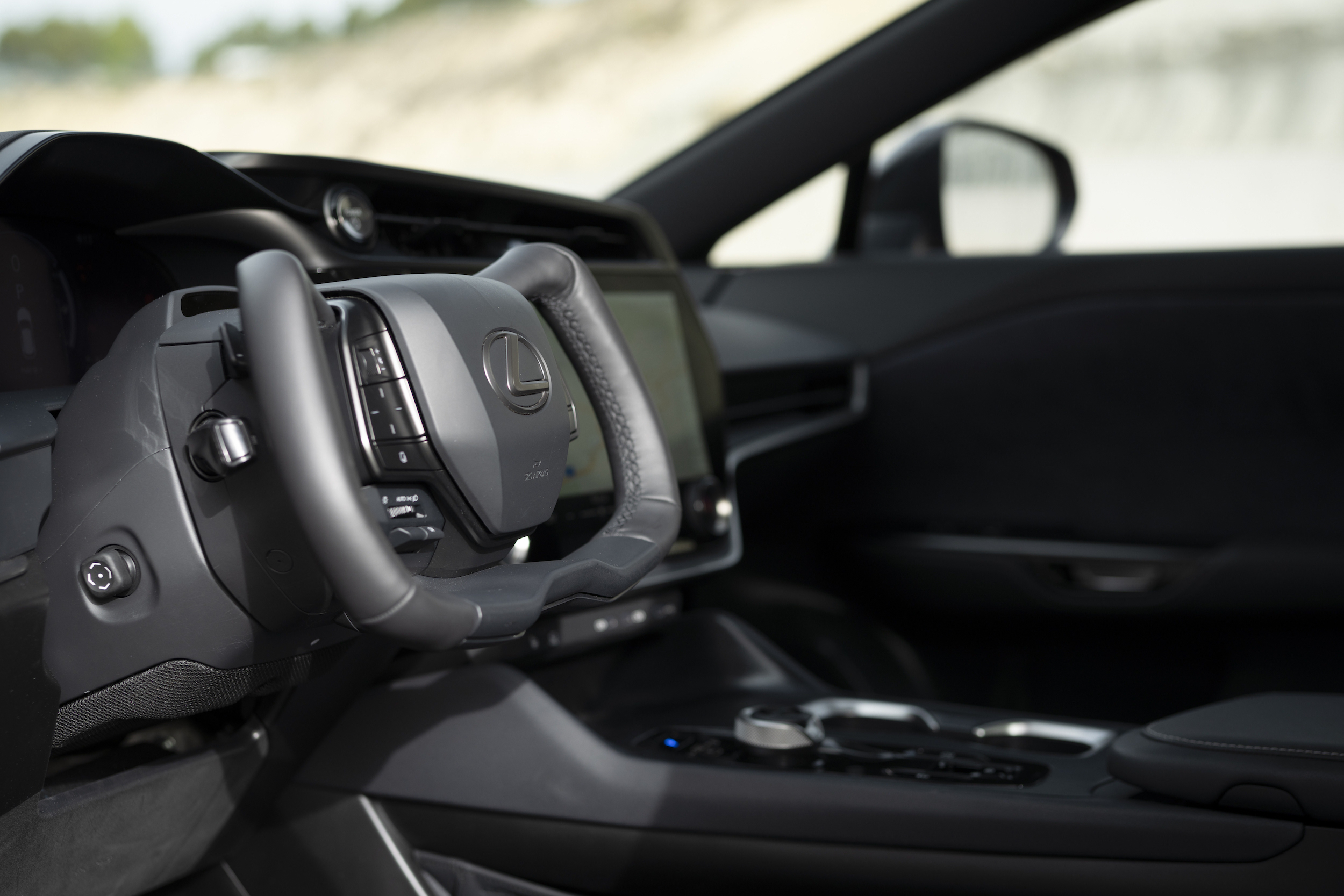 And, yes: Since the variable ratio eliminates hand-over-hand movements, Lexus took the liberty of replacing the steering wheel with the infamous yoke. This, too, sounds good on paper: It gives the driver a clearer view of the digital instrument cluster, which is embedded deeper into the dashboard than in the RZ fitted with the normal steering system.