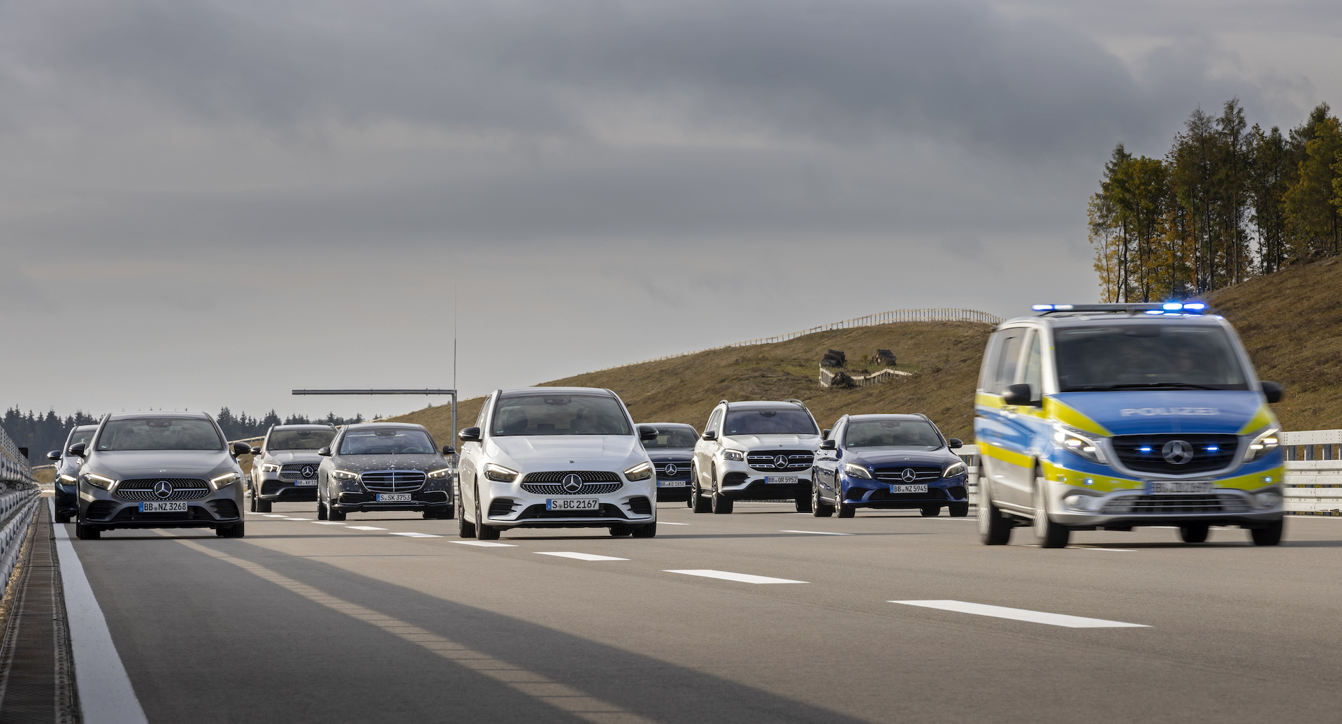 I pulled out onto the oval in a Drive Pilot-equipped Mercedes EQS. With Distronic (Mercedes’ smart cruise control that’s already available in the States) activated, the EV navigated down the tarmac at about 60 km/h (37 mph). The skies were clear, the sun was shining, and I was at the wheel of a cool car. It was a good day. But suddenly, a traffic jam ahead triggered some alerts and forced my car to a halt. A dozen or so EQBs, EQEs, EQSs, and Mercedes semi-trucks blocked the track. It took me a few seconds to realize it, but all of them were Mercedes employees playing actors for the day. This was the beginning of my first Level 3 experience.