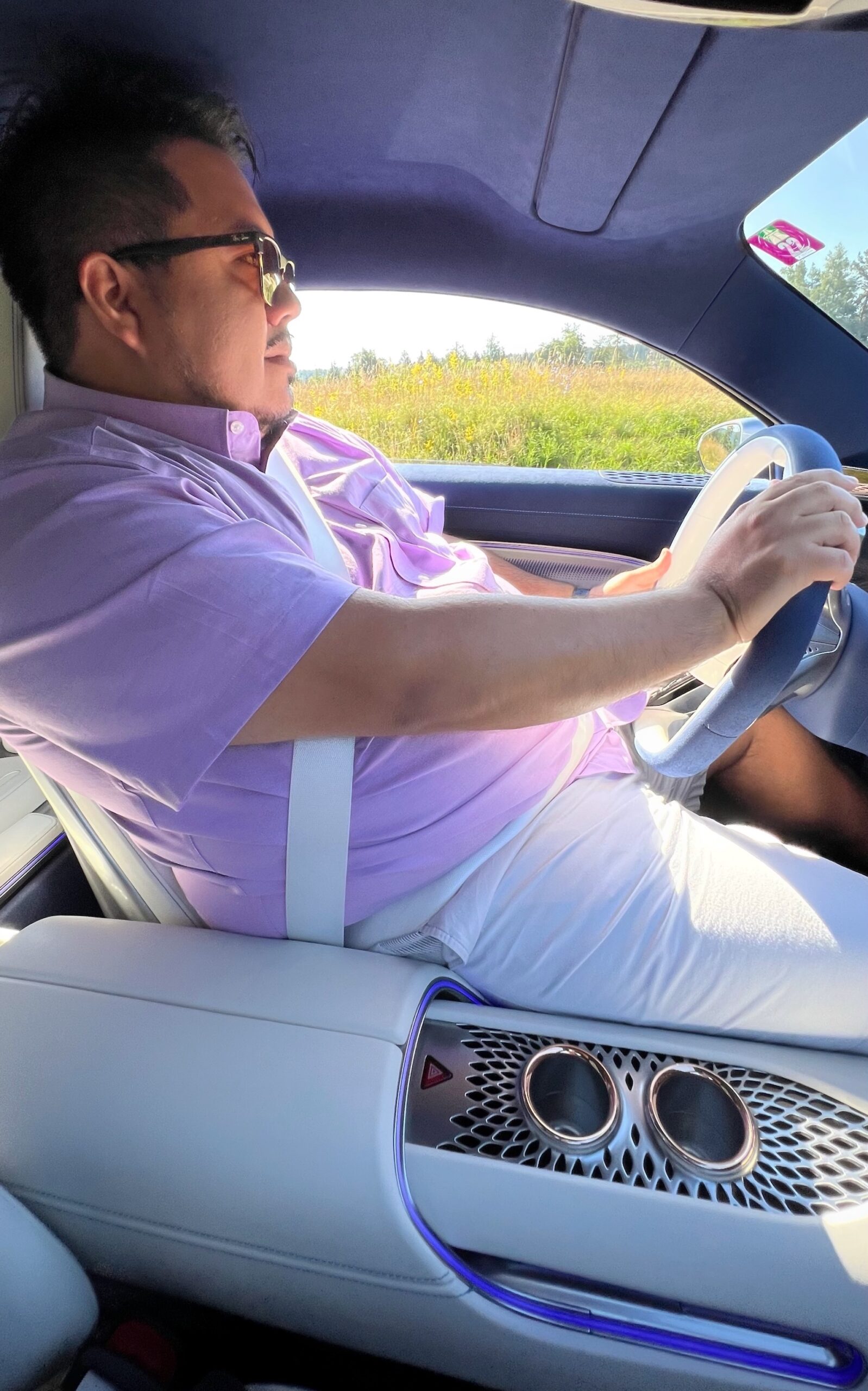 I was ready. I shifted into drive via the steering column-mounted shifter and… nothing happened. “Give it a bit of throttle,” my co-pilot said. I did, and the car began rolling the way most EVs do, with a tiny jolt forward and an audible clunk of the brakes releasing the wheels.