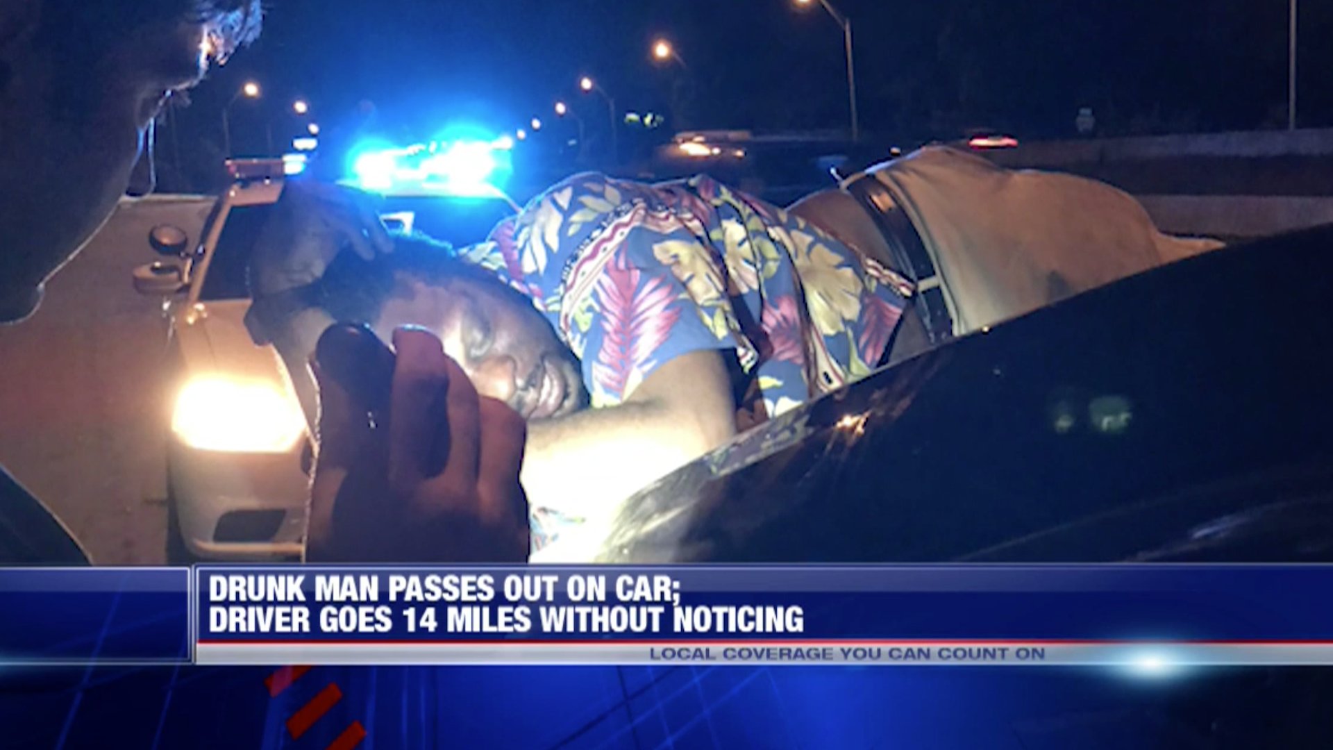 A couple in a car took a drunk man on a ride Thursday night in Memphis as he laid unconscious on their car trunk until police informed them of the stowaway, according to local news station Fox 13.
