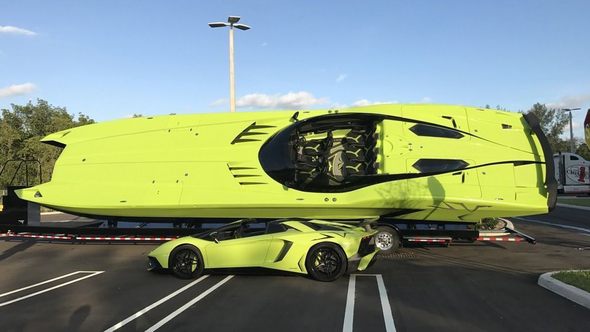 Summer is officially upon us, and if you’ve got an empty bay in your garage, a vacant slip at your marina, and a cool $2.2 million burning a hole in your pocket, then buddy, do we have some good news for you. Now’s your chance to snag the ultimate twofer on eBay—a 2016 Lamborghini Aventador SV Roadster and a 52-foot, custom-made MTI G6 catamaran that looks exactly like its landlubbing fraternal twin.