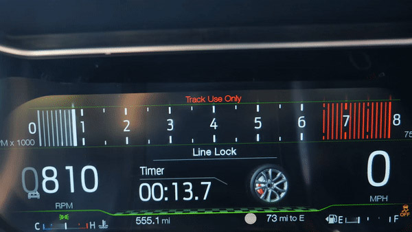 The change now means that line lock—which was originally designed to warm up the rear rubber ahead of a drag race, but in the real world has been largely used for, shall we say, stuntin’—is available on all new ‘Stangs, whether they’re equipped with the six-speed manual transmission or the new 10-speed automatic gearbox. If the owner of the 2018 Ford Mustang in question has sprung for the 12-inch digital instrument panel, activating line lock also brings up a cute little animation of a wheel doing a burnout—as you can see in this handy, Ford-provided GIF.