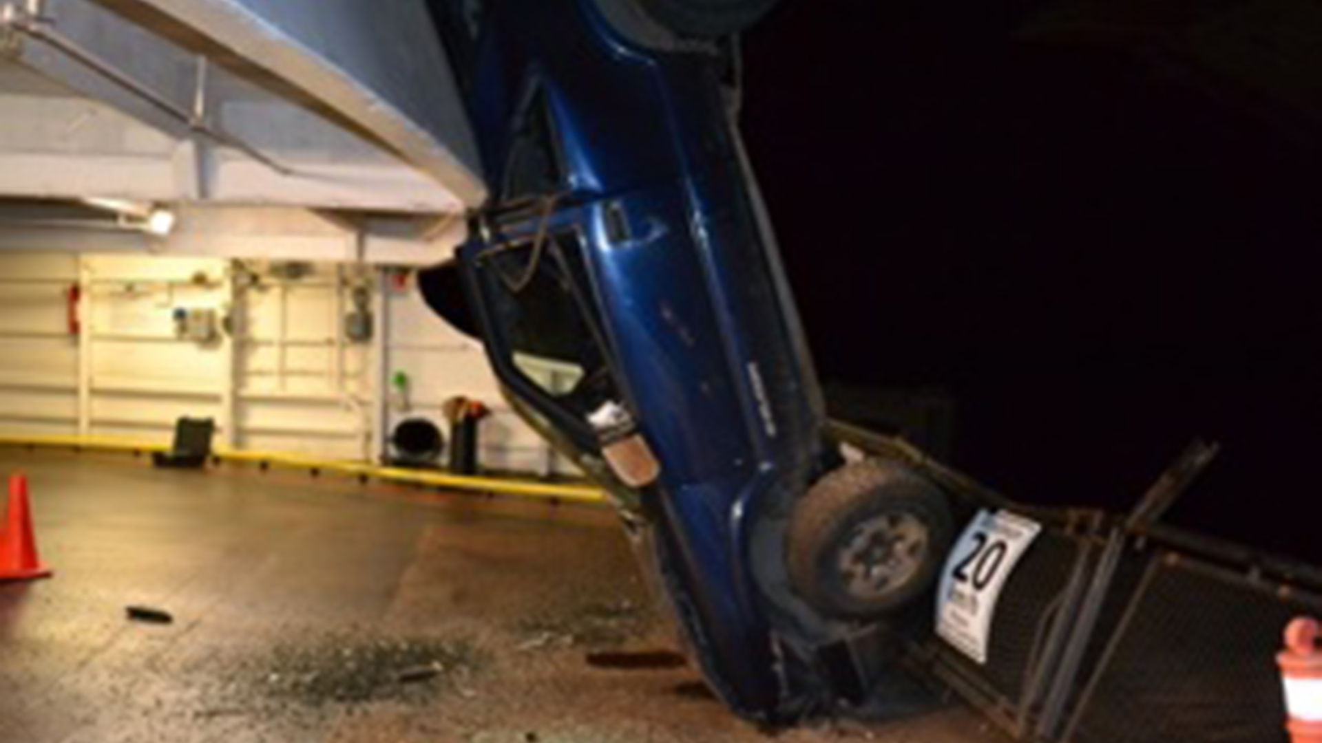 According to a report from the Sunshine Coast RCMP, at around 1:30 am, Campbell drove his SUV through a locked gate at the closed BC Ferries Langdale Terminal. He then proceeded up the upper deck loading ramp, smashing his way through several more barriers and locked gates. Campbell then launched his SUV off the loading ramp and onto the upper car deck of the ferry.