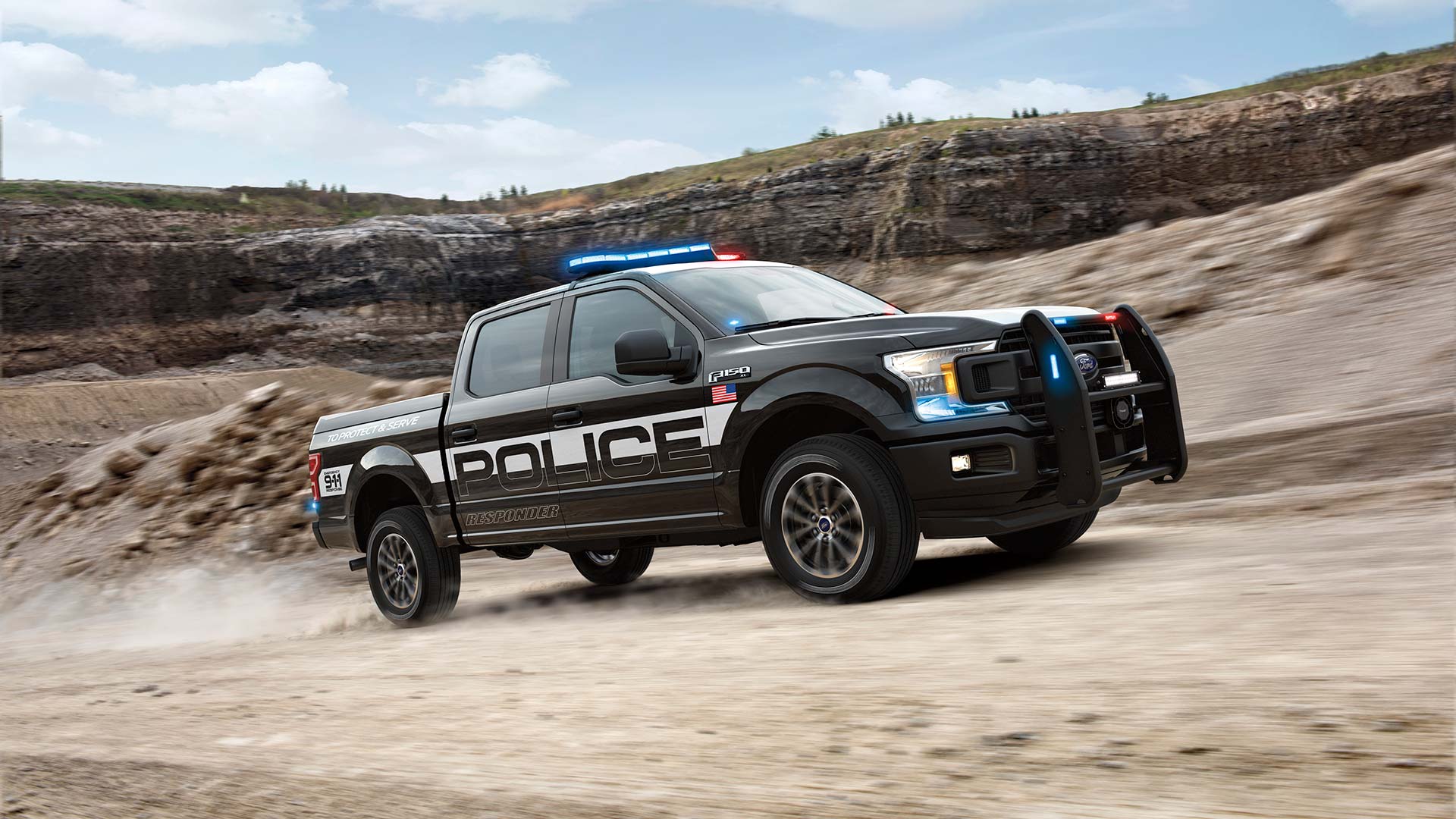 According to the manufacturer, the 2018 Ford F-150 Police Responder is a fleet version of the Ford F-150 FX4 designed to withstand the treacherous conditions associated with police work. The new F-150 will have upgraded brake calipers and pads, upgraded front stabilizer bar, steel wheels, skid plates and plenty of other goodies to happily take a constant beating.