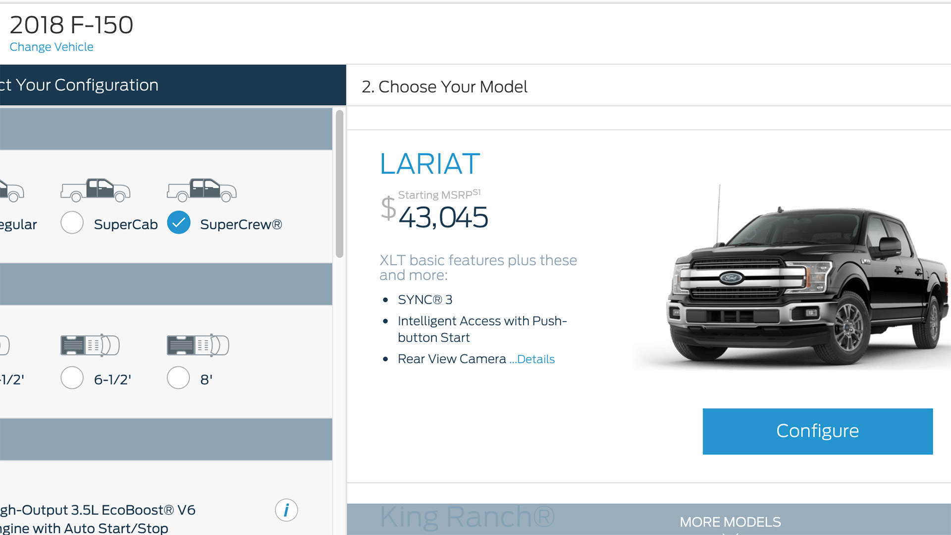 The configurator indicated the base 2018 Ford F-150 XL regular cab 4×2 will start at $27,380 and will come with a 290 horsepower and 265 lb-ft of torque 3.3-liter Ti-VCT V6. That is just $270 more than the outgoing 3.5-liter Ti-VCT F-150 XL. It is also worth noting the popular 2.7-liter EcoBoost V6 will be getting a bump in torque from 375 lb-ft of torque to 400 lb-ft of torque. Just as a friendly reminder, that is 17 lb-ft of torque more than what you find in the Chevy Silverado with a 5.3-liter V8.