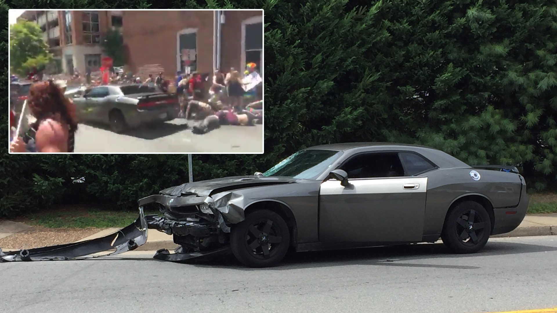The above video shows the moments leading up to the accident. Protesters chant “Who’s streets?” which is followed by a determined response of “Our streets,” but both are soon outweighed by the cries and screams of onlookers as the gray Challenger speeds down the street directly into the crowd. The distinct, sickening thumps of the car hitting bodies can be heard.