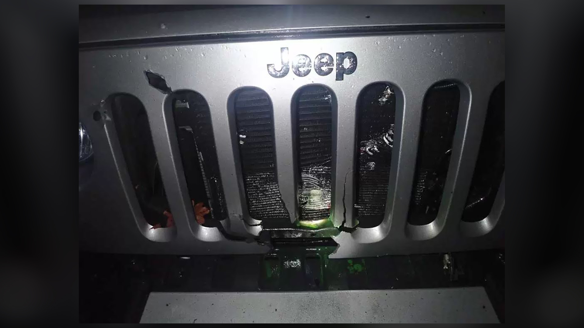 Police responded to a call about an explosion and damage to a vehicle on Thursday night in Blackstone, Massachusetts and discovered the Wrangler with a sizable hole punched in its grille and damage to the radiator and engine block. The owner, who is the principal of nearby Bellingham High School, told officers he was inside when the blast shook his house, sending neighbors running outside to see what had happened.