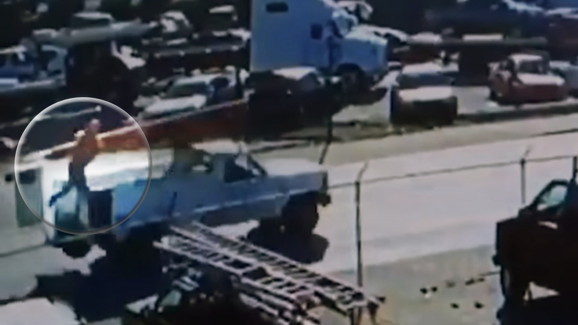 Security footage obtained by the station shows the truck booking it down a nearby road soon after the theft, and you can clearly see the employee has lowered the bucket and is trying desperately to climb to the relative safety of the bed of the truck. Police from several area jurisdictions responded and gave chase, pursuing the suspect into a Cincinnati neighborhood where officers used stop sticks to finally bring an end to things.