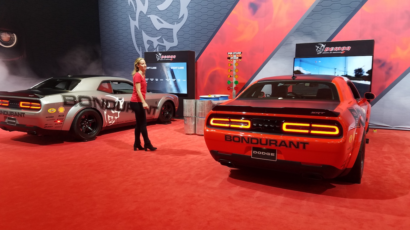 While most of us won’t ever be get behind the wheel of the Dodge Demon on a real drag strip, the LAAS offers a nice (and safe) compromise. In the back of Dodge’s exhibit lies a pair of Demons hooked up to a racing simulator. Launching the Demon in-game is a little different than the real thing, but the cars will simulate a quarter-mile in Dodge’s drag-monster pretty well. It’s good fun and pretty challenging to control the car, although we wish it gave better and more violent feedback: We want to feel what zero to 60 miles per hour in 2.1 seconds is like!