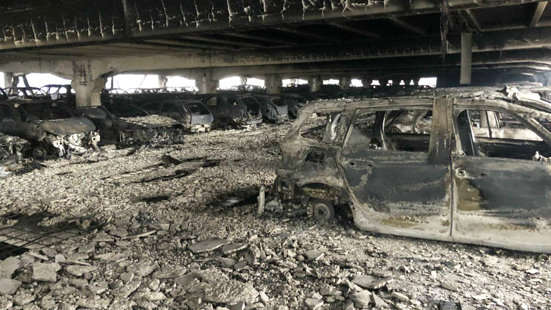 The inferno raged for hours until firefighters were able to extinguish it early Monday morning, but every single car below the roof level was destroyed. Officials still don’t know the full extent of the damage, as the fire was so intense that internal sections of the structure have collapsed. Miraculously, four dogs were found alive and unharmed in a heat-damaged car parked on the roof. People: Don’t leave dogs in cars.