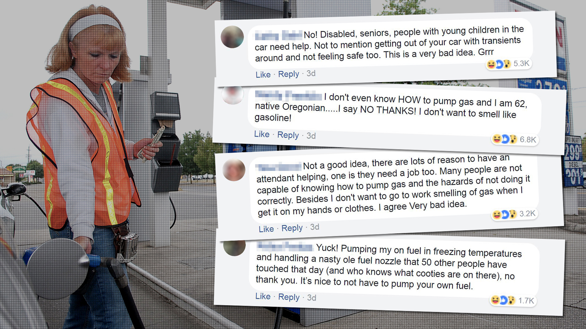 But that’s not enough for the angry online hordes, who can smell a slippery slope from a mile away. When local CBS affiliate KTVL posted an online poll asking residents if they thought the law should be expanded statewide, the comments blew up with Oregonians aghast at the thought of having to dirty their hands with the dangerous work of pumping gas.