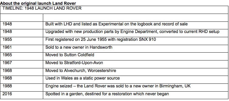 “This Land Rover is an irreplaceable piece of world automotive history and is as historically important as ‘Huey,’ the first pre-production Land Rover,” said JLR Classic director Tim Hannig. “Beginning its sympathetic restoration here at Classic Works, where we can ensure it’s put back together precisely as it’s meant to be, is a fitting way to start Land Rover’s 70th anniversary year.”