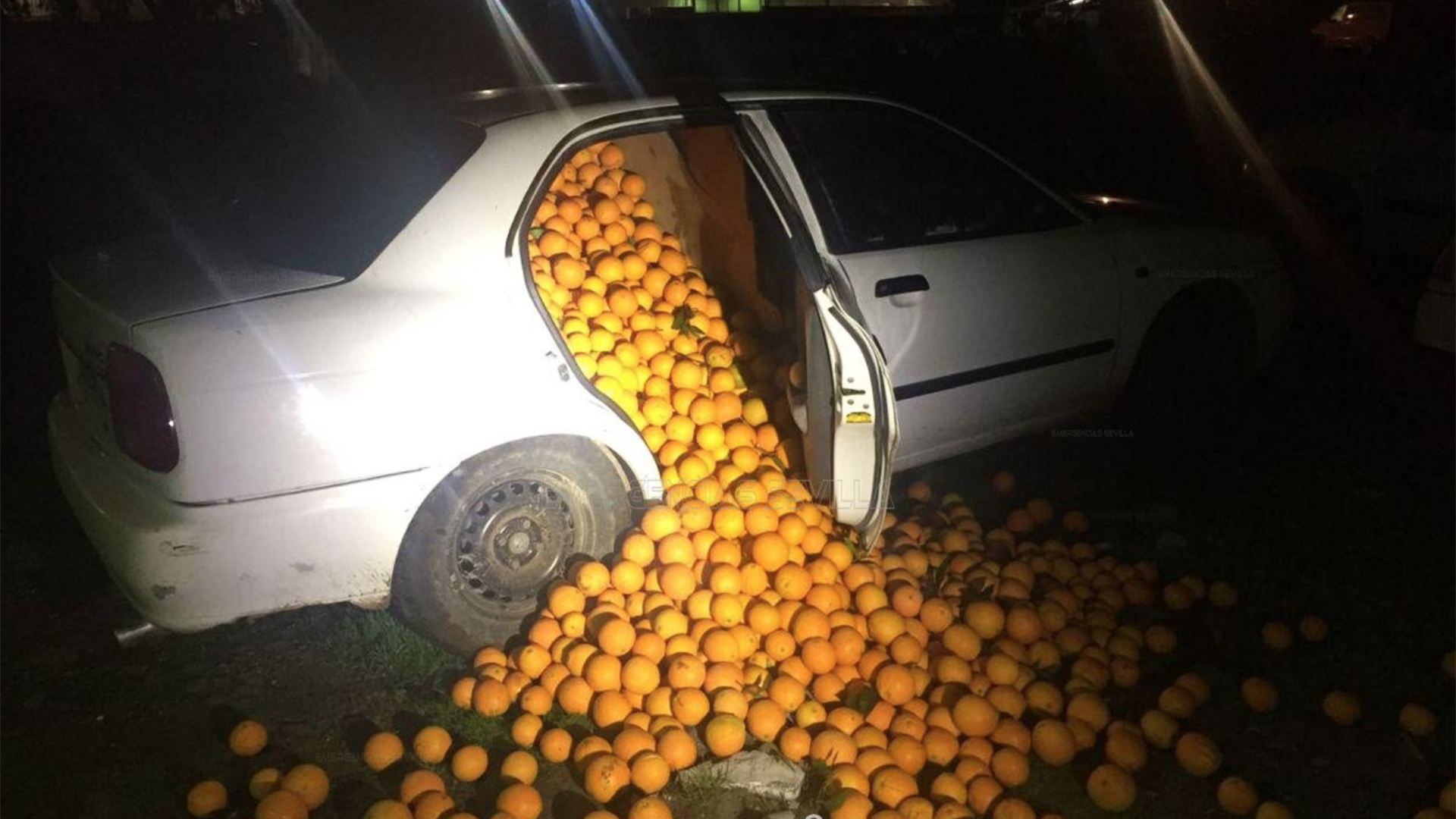 If you’re a fan of citrus fruit and volumetric puzzles, then we’ve got a story for you: Authorities in Spain busted a crew of thieves after they allegedly stole more than four tons of fresh oranges and crammed their loot into two tiny compact cars, Europa Press reports.