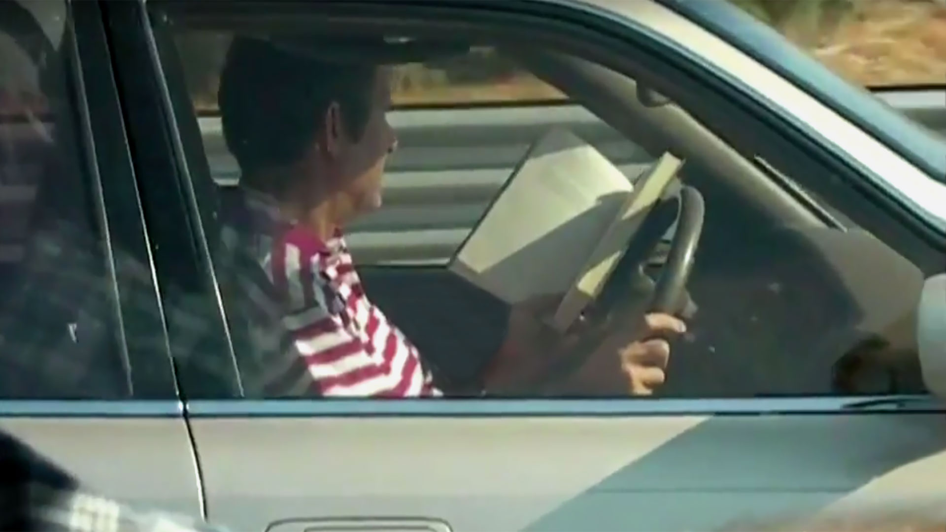 Sadly, the dash cam video of the incident doesn’t include the driver mentioning which James Patterson novel he was reading; if it did, we’d be tempted to start an IndieGogo campaign to buy him the audiobook version. (That said, we were always more Stephen King fans, so maybe we’ll order him a digital copy of The Stand instead. That ought to keep him busy for a few months.)