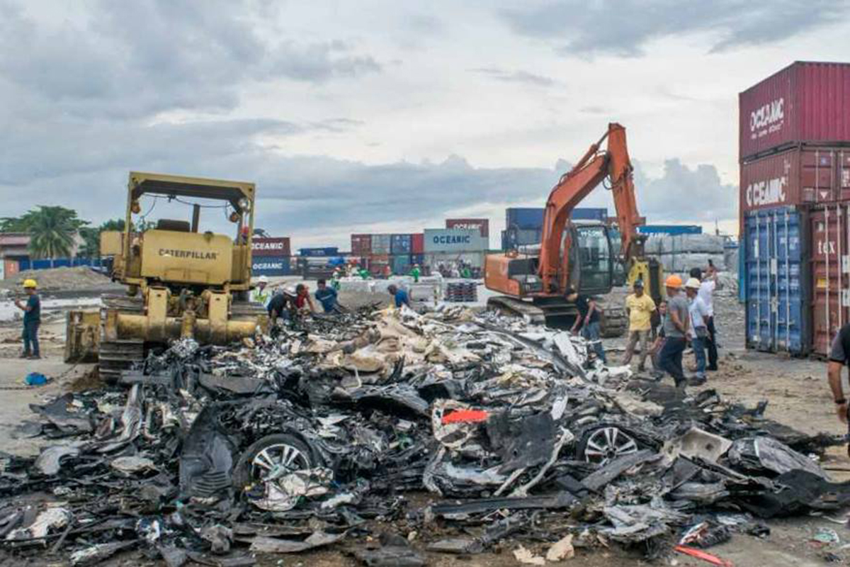 With the crushing complete, Duterte reportedly instructed officials to sell the wrecks to metal recyclers to further dismantle them. As Reuters points out, the government is in the midst of a big tax enforcement push to help fund a planned $180 billion infrastructure plan. It’s not clear why Duterte ordered them destroyed instead of auctioned off, though it could be argued that $1 million wouldn’t go very far in that regard. Also, the auction block isn’t nearly as dramatic a punishment as a bulldozer.