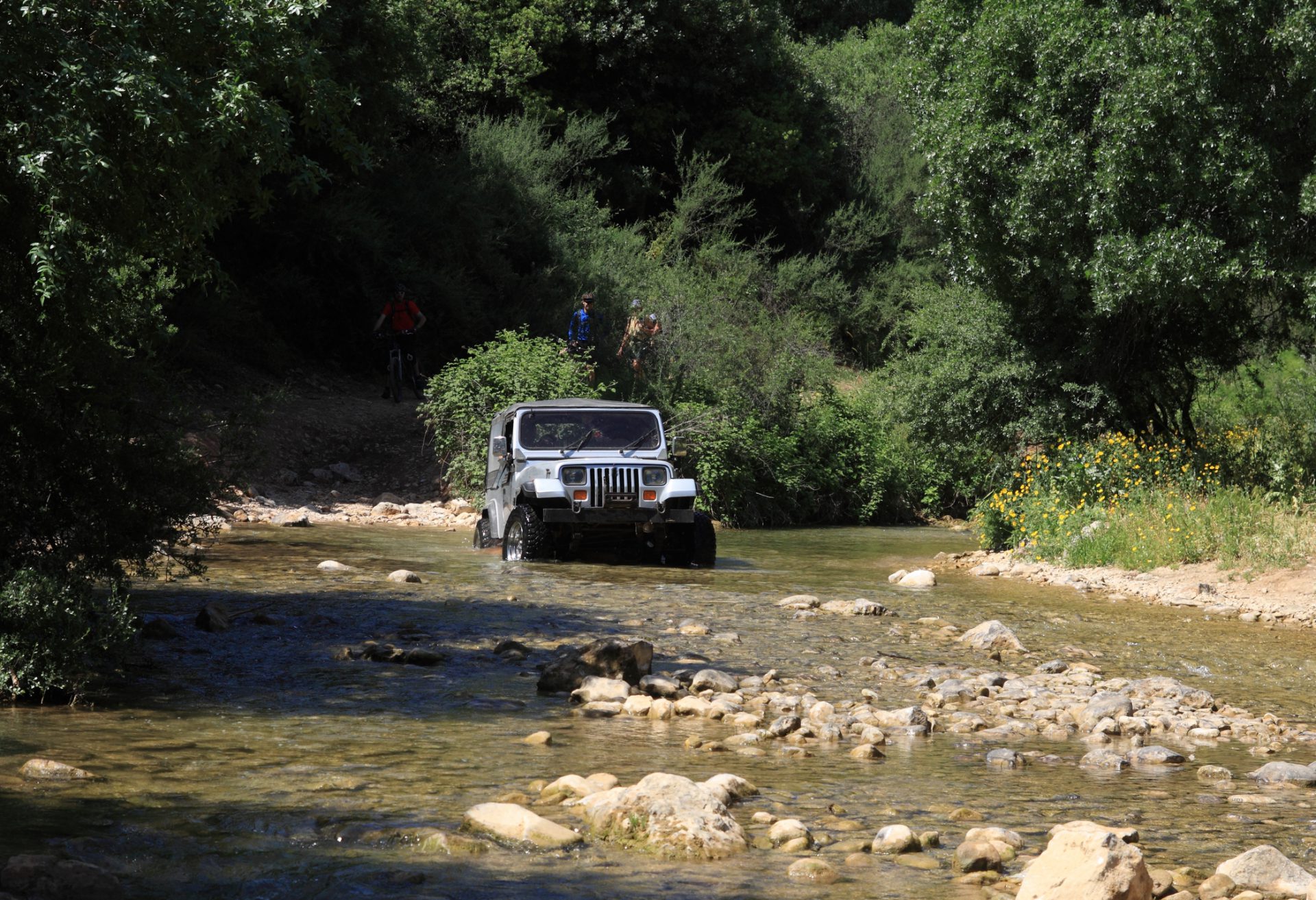 An FCA spokesperson did not directly address whether the commercial could be seen as encouraging people to drive in creeks, but said “the vehicle shown in the video is driving on a designated county road that experiences seasonal runoff.”