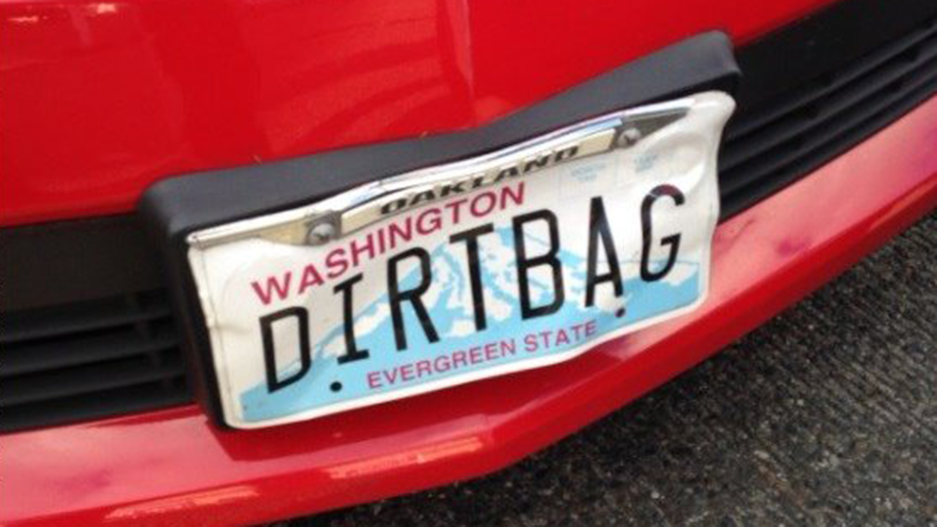 The incident went down at an automatic car wash in Bellevue, Washington on Sunday when the 40-year-old driver of the Camaro rear-ended another car while they were waiting in line in the parking lot. As the other driver got out of his car to photograph the damage—the suspect’s DIRTBAG plate is visibly crumpled in a police handout—the Camaro driver reportedly pointed a handgun at him and made several threats. There’s no word on whether he was blasting Iron Maiden at the time.
