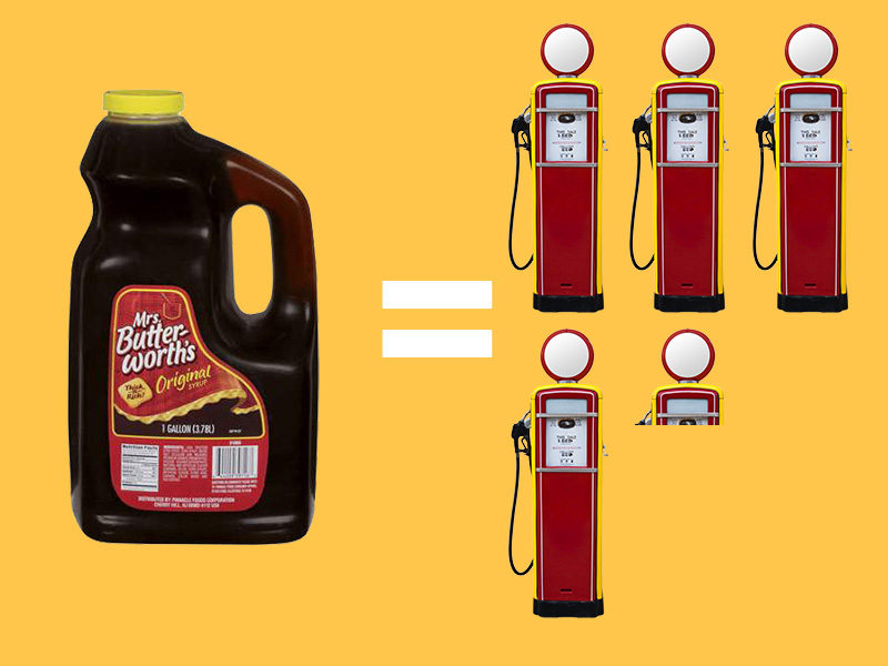 Price of Mrs. Buttersworth’s maple syrup: $7.98/gal
