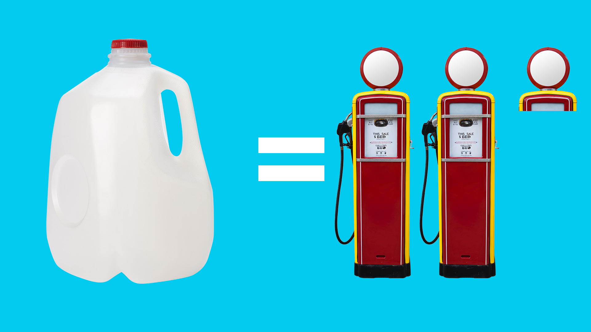 Thanks to OPEC’s posturing, pricing and politicking, gas is actually cheaper than milk. And bottled water. Even the goop that fills Mrs. Butterworth’s strange, anthropomorphic bottles. Think about that: Corn syrup, made of corn, over-produced and subsidized to the hilt—will set you back more than a gallon of liquid carbon extricated from the earth’s core, strenuously refined and trucked hundreds of miles. We’ve explained why gas is cheap, but maybe you’re the type of person who needs pictures to drive the point home. No shame in that.