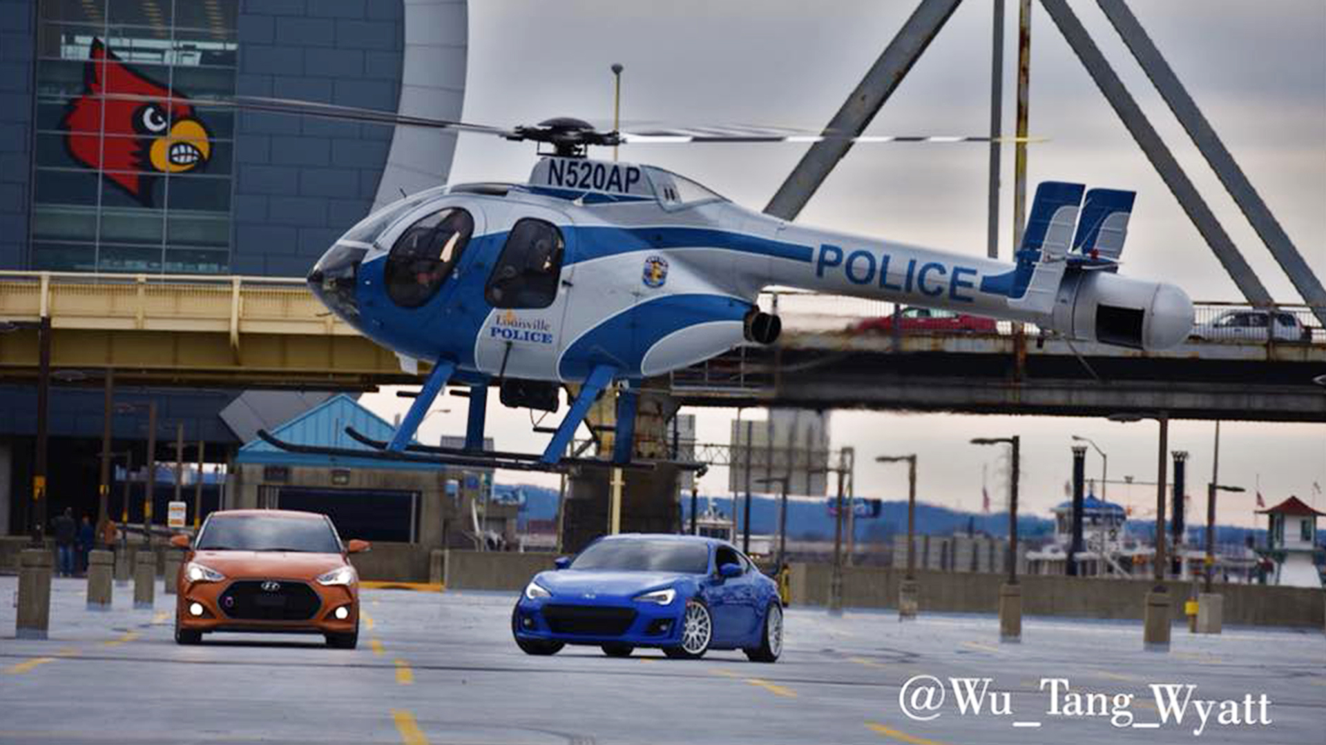 Kentucky resident Zack Bell wasn’t looking for anything but a view of the floodwaters in downtown Louisville on Sunday when he drove his Subaru BRZ up to the roof of an empty parking garage next to the arena for the University of Louisville basketball teams. Unfortunately, that’s not how the crew of a police helicopter circling above saw it.