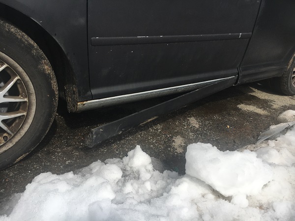 The process of backing the Ute out from its wintery tomb caused one of the rivets holding the fiberglass trim panel below the driver’s door to pop out, exposing a little bit of minor surface rust on the metal rocker panel underneath. Both of these will be easily repaired. Though I had planned to lift the car slightly as my next project, the snow delay is making me change my next priority to getting it ready for state inspection, which is due in April. My Subaru WRX just passed a stricter than ever inspection, so I’ll need to get the Ute squeaky clean to pass in its significantly altered state. Fortunately, it now qualifies for the Massachusetts exemption on emissions testing for vehicles 15 or more years old, so I don’t need to worry about the Check Engine light that is constantly on in nearly every older Volkswagen, including this one.