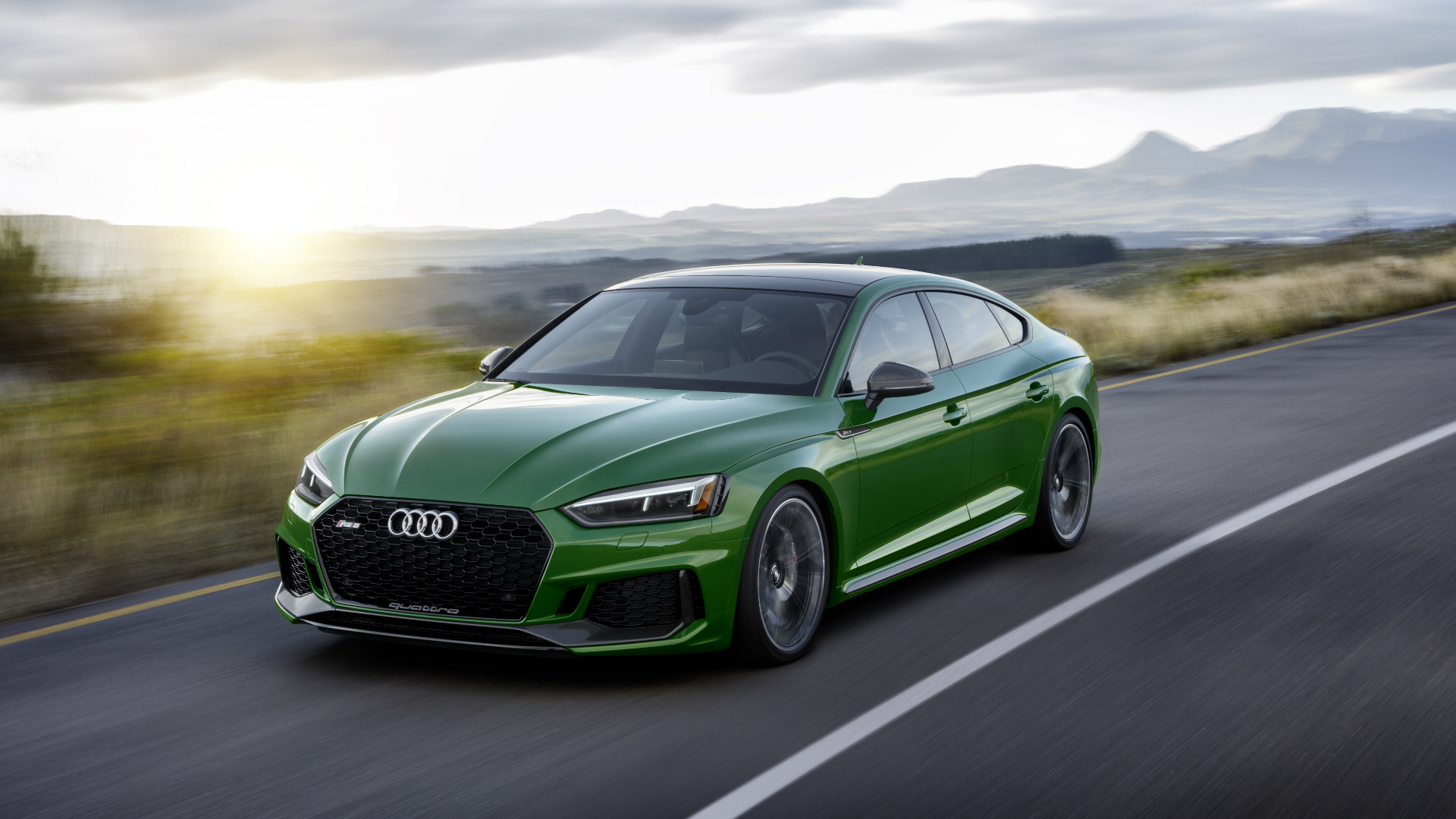 The exterior design of the RS 5 Sportback is inspired by that of the Audi 90 Quattro IMSA GTO. Compared to the S 5 Sportback, the RS 5 is 15 millimeters wider on each side and the flared box fenders provide cues to the standard Quattro all-wheel-drive system. In order to further differentiate the RS 5 Sportback for its lesser siblings, Audi designers have fitted it with a wide and flat single-frame grille, large RS-specific honeycomb air intakes, matte alu-optic front spoiler with Quattro script, matte alu-optic exterior mirror housings and high gloss black side sills. At the rear, the Audi RS 5 Sportback is easily recognized by the RS-specific diffuser, oval RS exhaust pipes, and a high gloss black rear-lip spoiler.