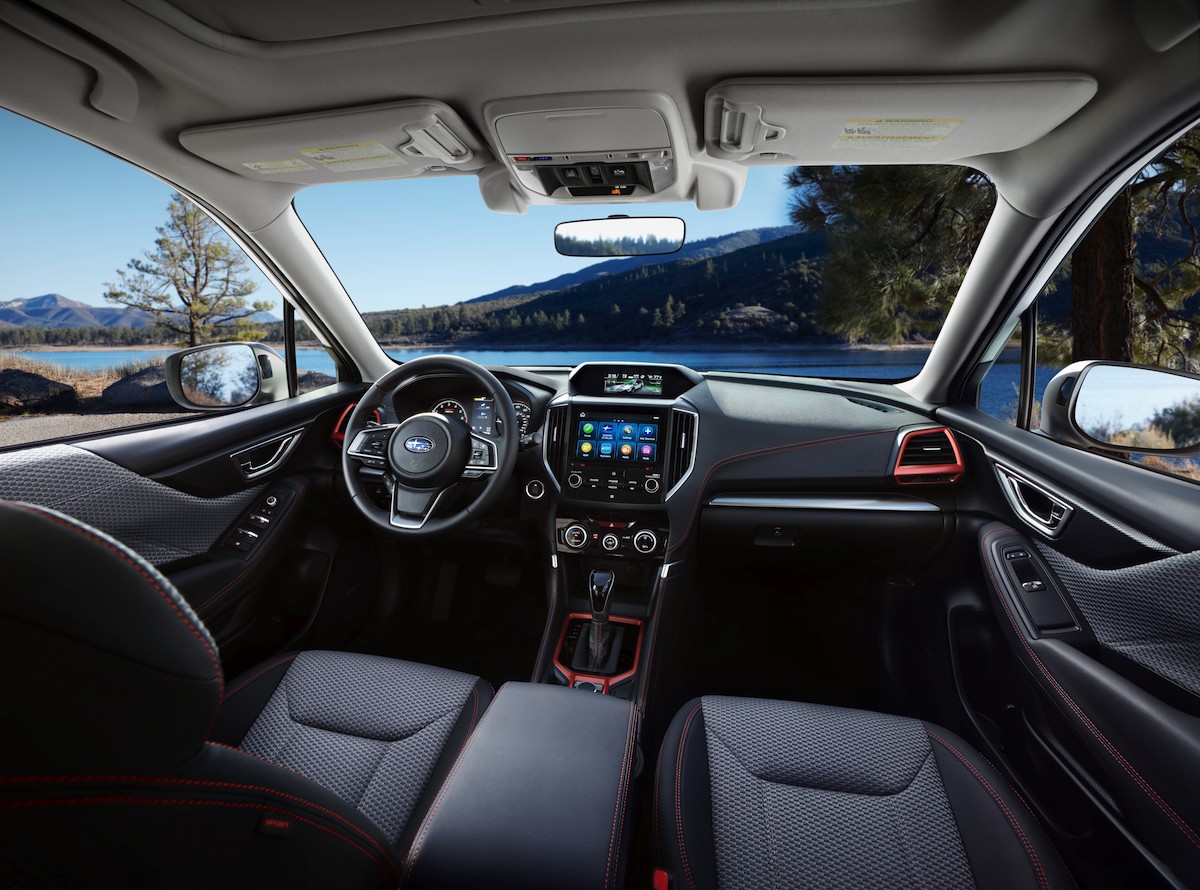 The Forester’s new range of exterior paint colors includes Crimson Red Pearl, Horizon Blue Pearl, and Jasper Green Metallic, complemented by black or silver accents. The all-new Forester Sport trim level comes equipped with unique exterior aesthetic touches and contrasting orange stitching in the cockpit.